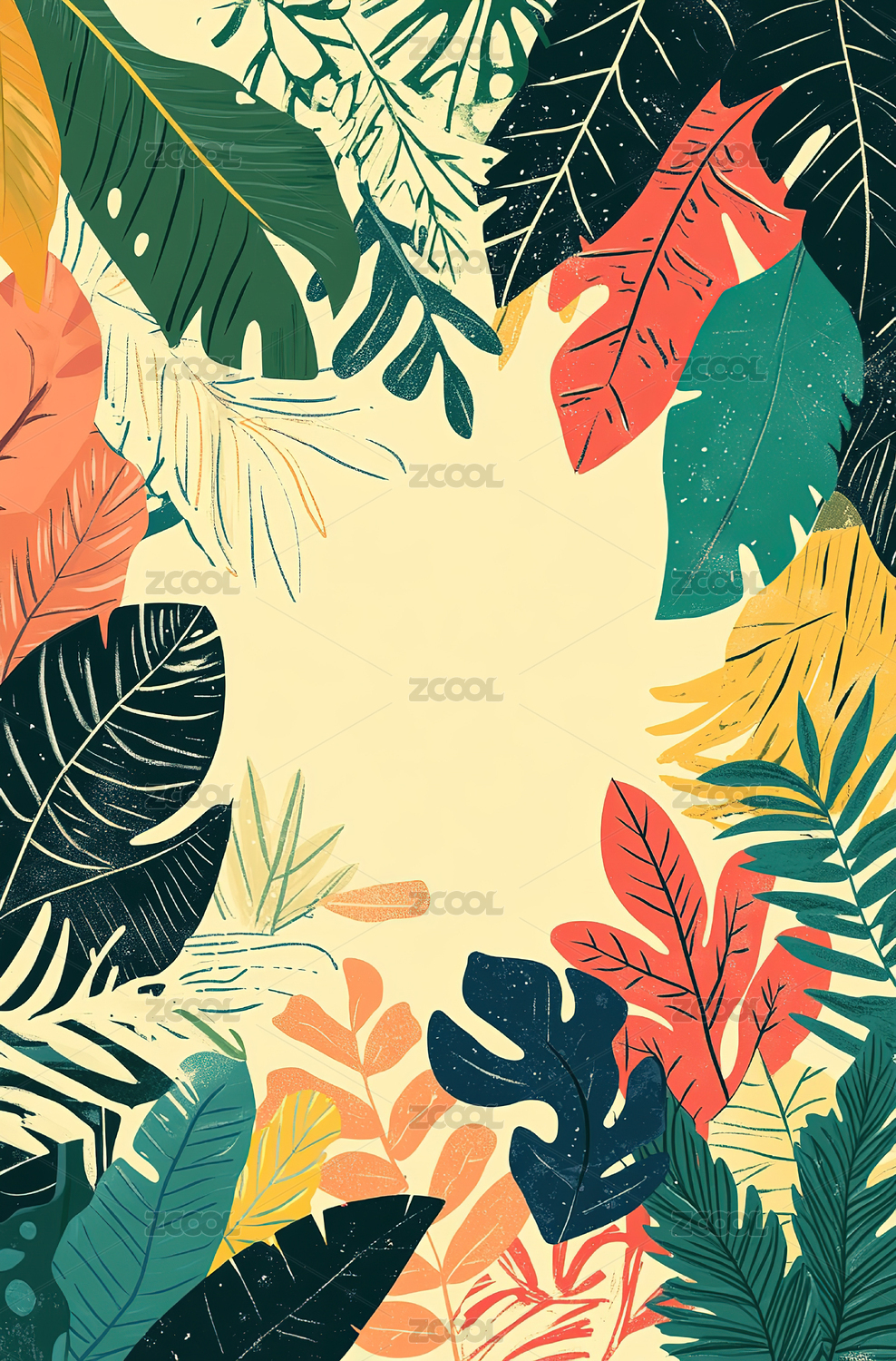 简约矢量剪纸剪影风格植物叶子装饰插画