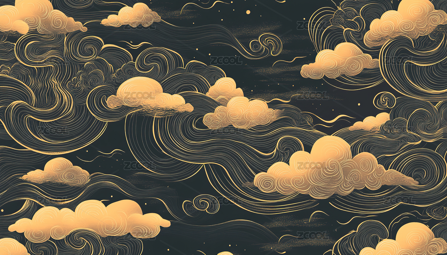 中国风敦煌飞天米色祥云古典插画, 中秋敦