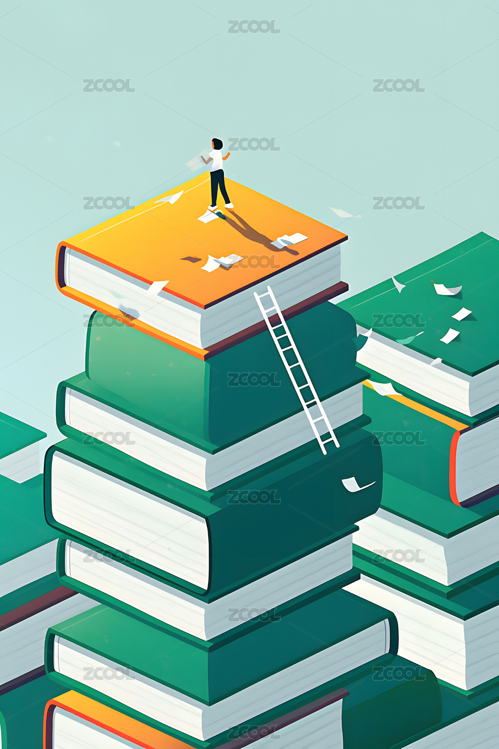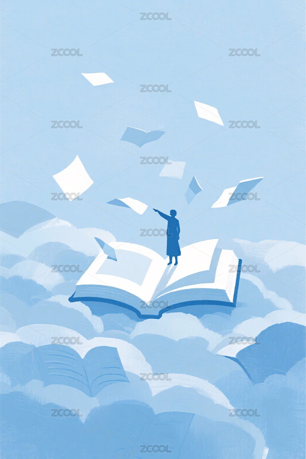插画,潮流,渐变,奔跑,书本,教育,教培,书籍,女孩,跑步