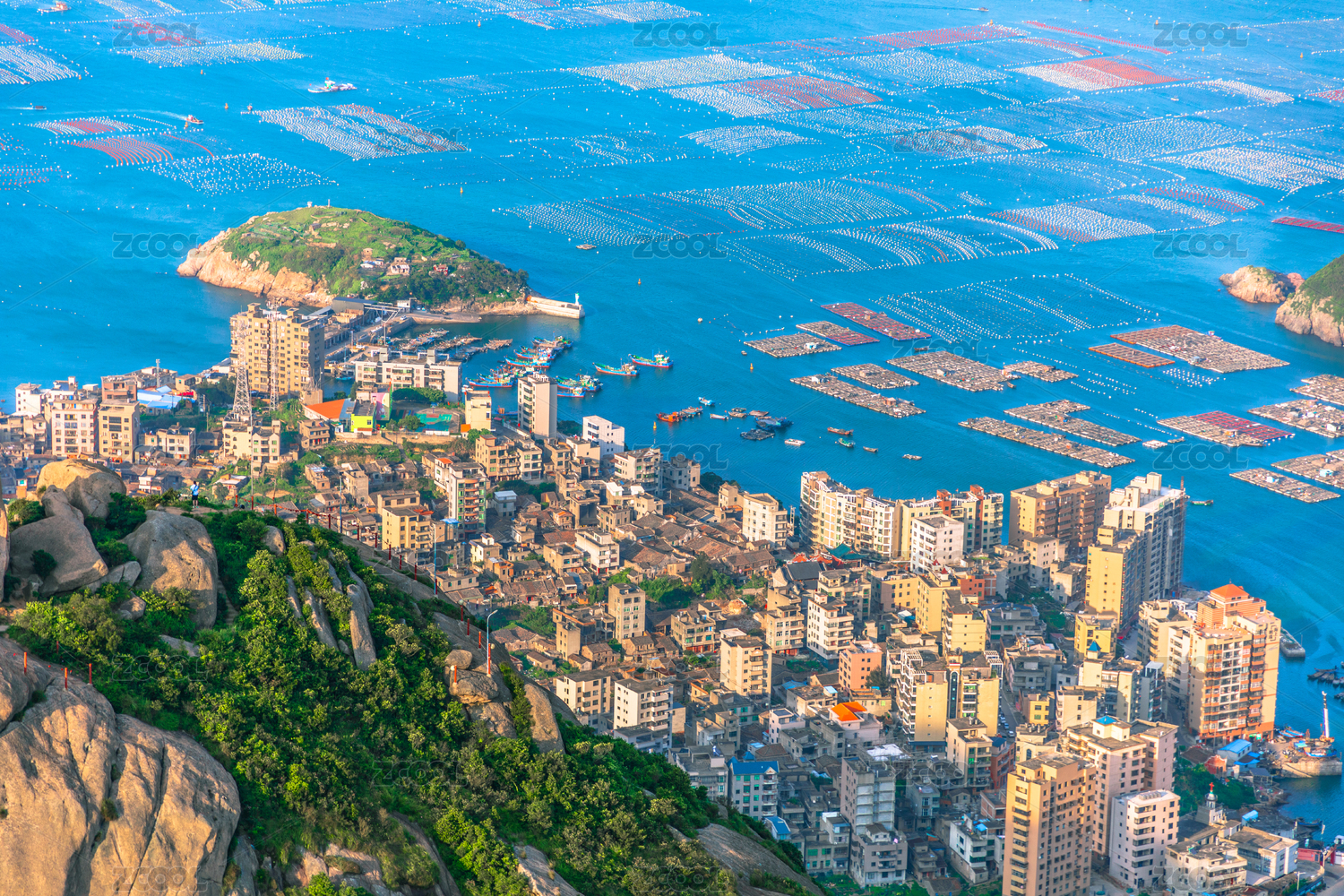 福建省福州市连江县旗冠顶-晴空下海湾和渔