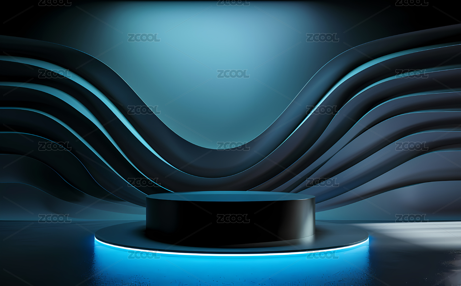 无人,舞台,演讲台,底座,圆形,设计,太空,景象,照亮,奖