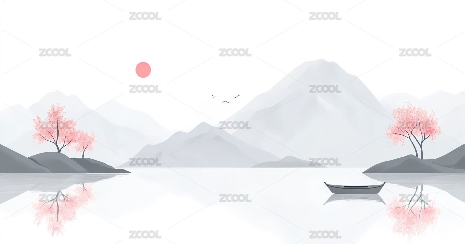 无人,地形,中国文化,自然,中国画,高山,插画,背景,艺术,新中式风格