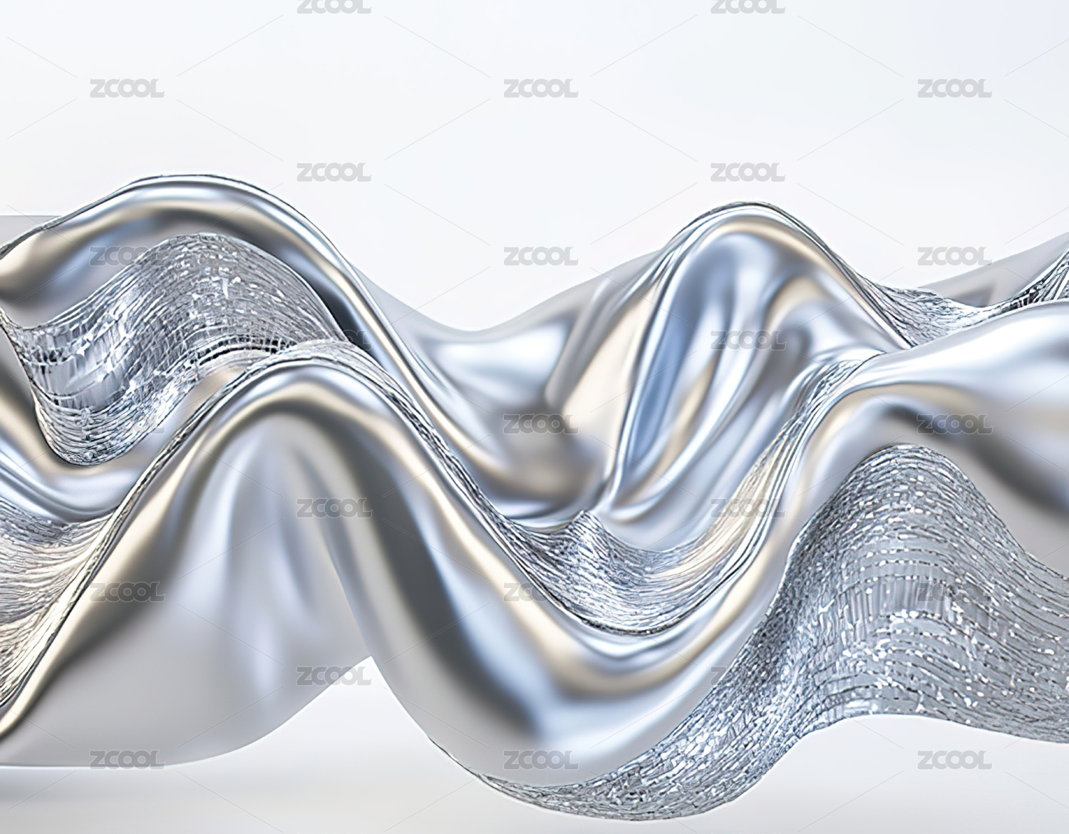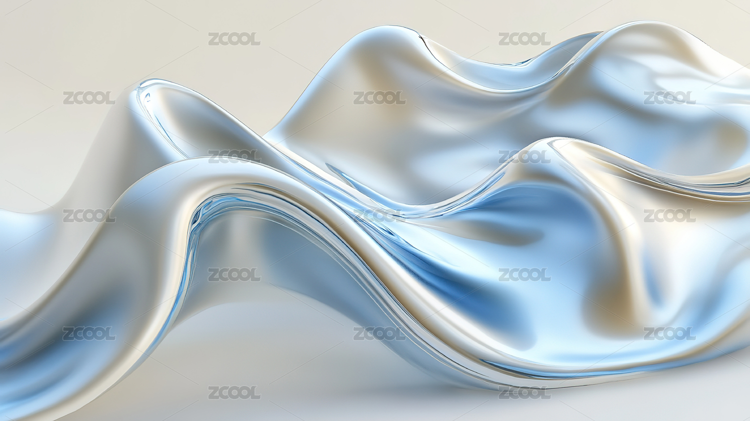 晶莹反射光影起伏波浪流淌透明液体3d插画