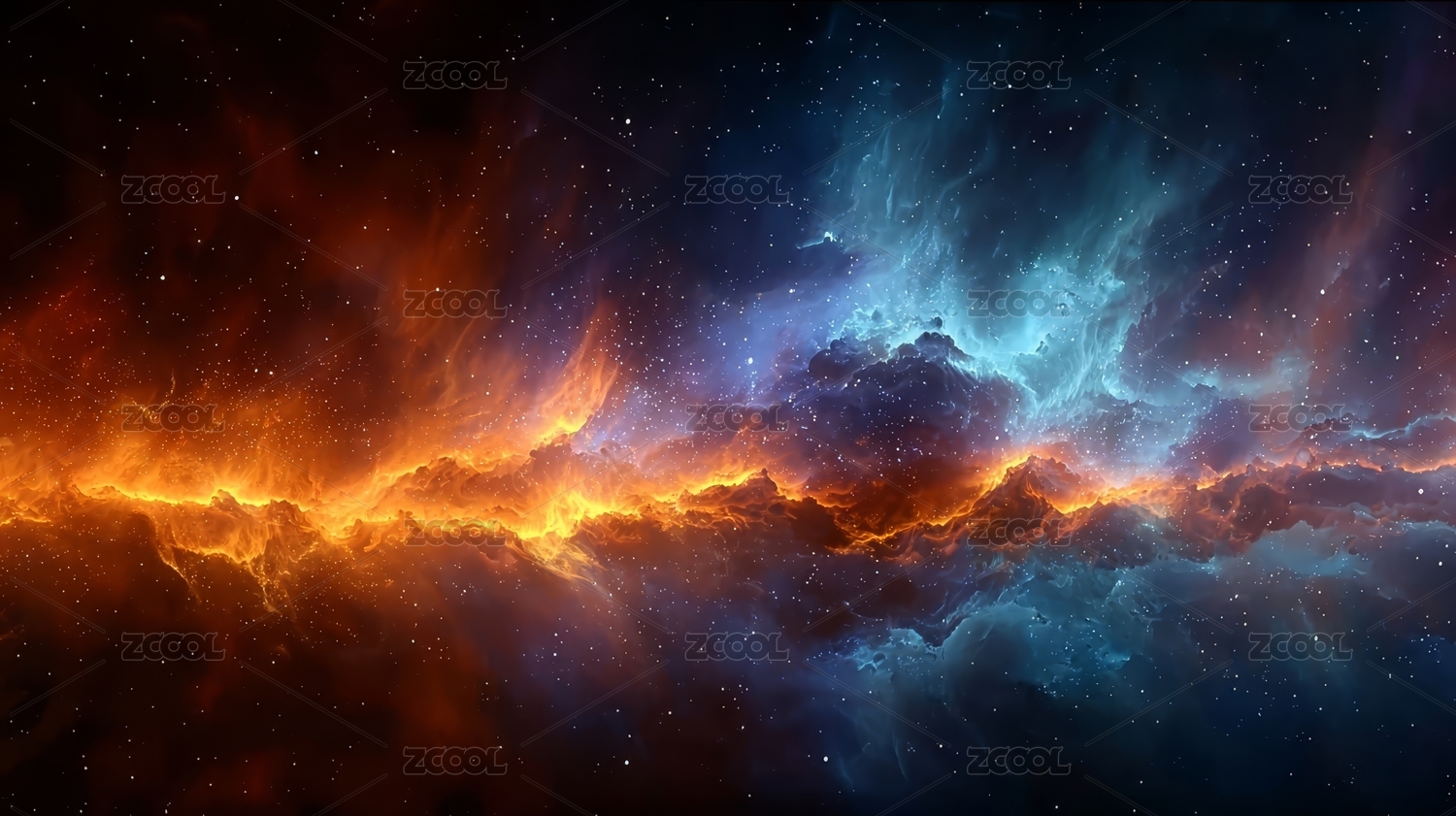 宇宙星云的火焰与冰蓝交织
