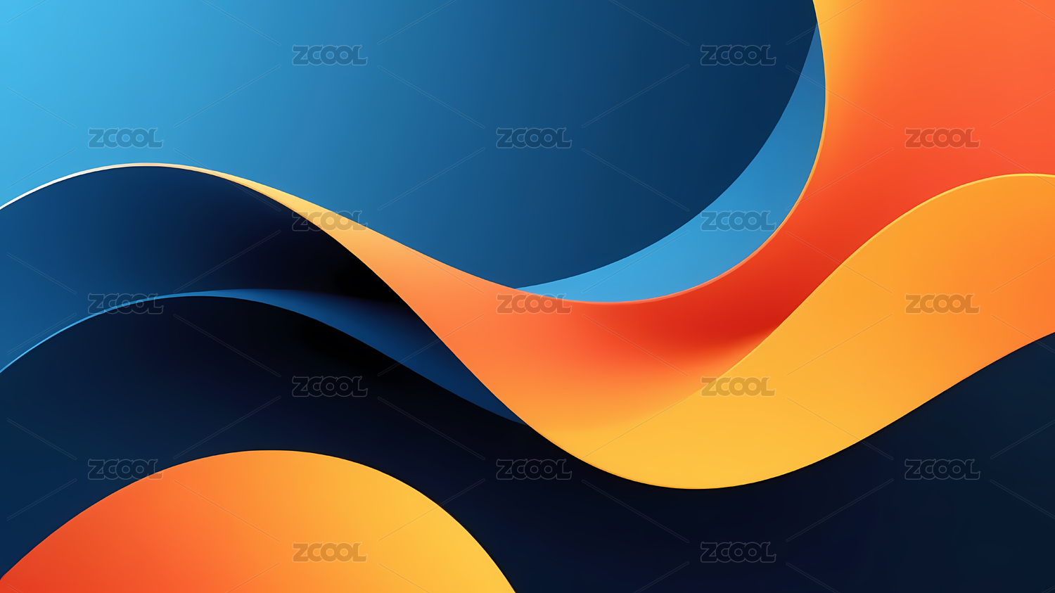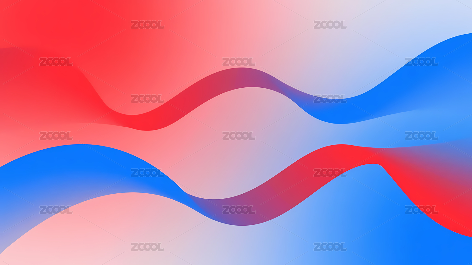 红色蓝色渐变波浪曲线明亮活力质感抽象背景