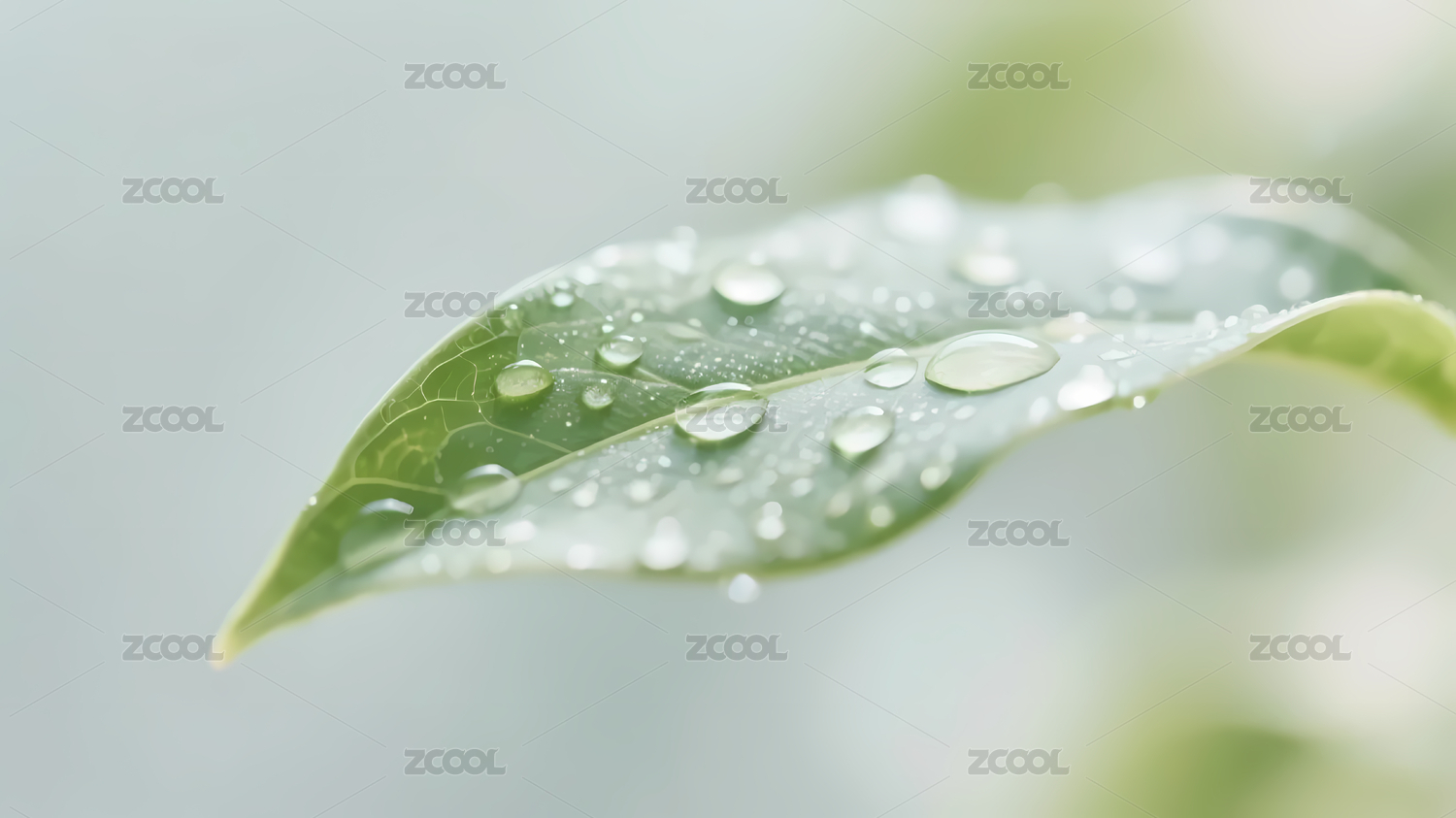 下雨天雨滴在叶子上特写雨水节气场景插图