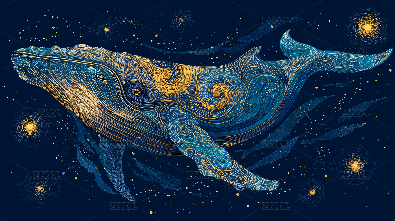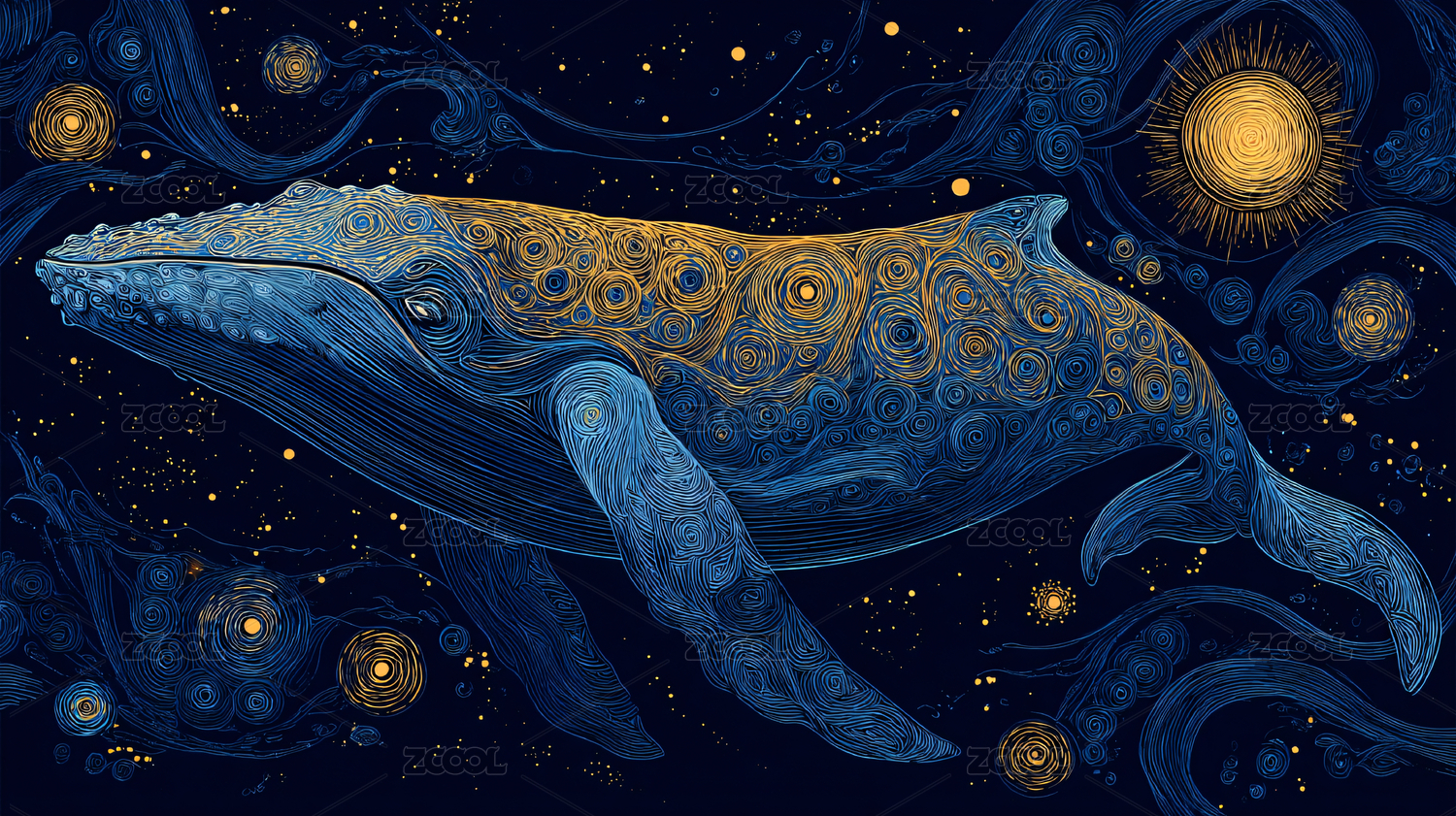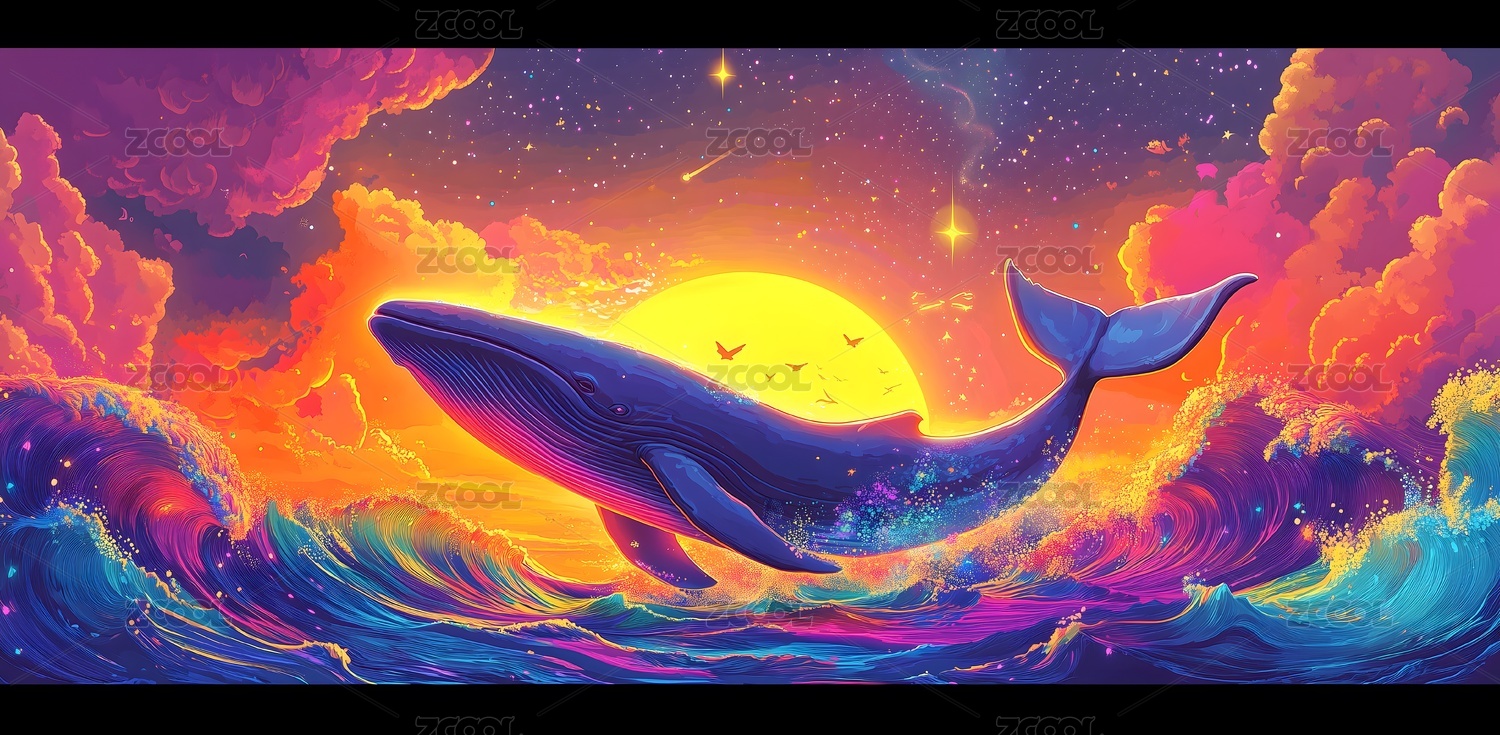 梦幻蓝鲸海洋插画
