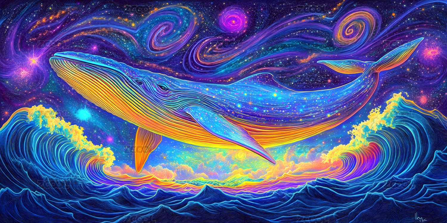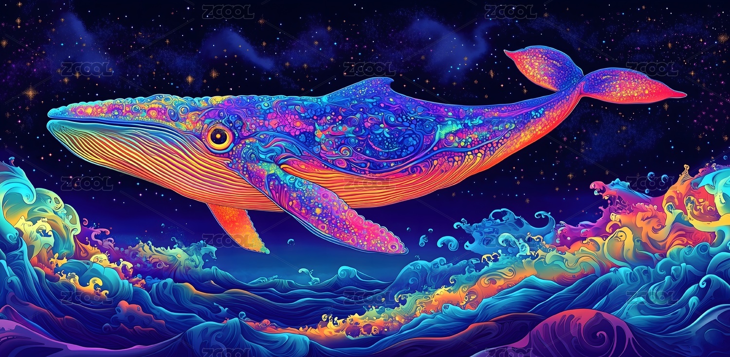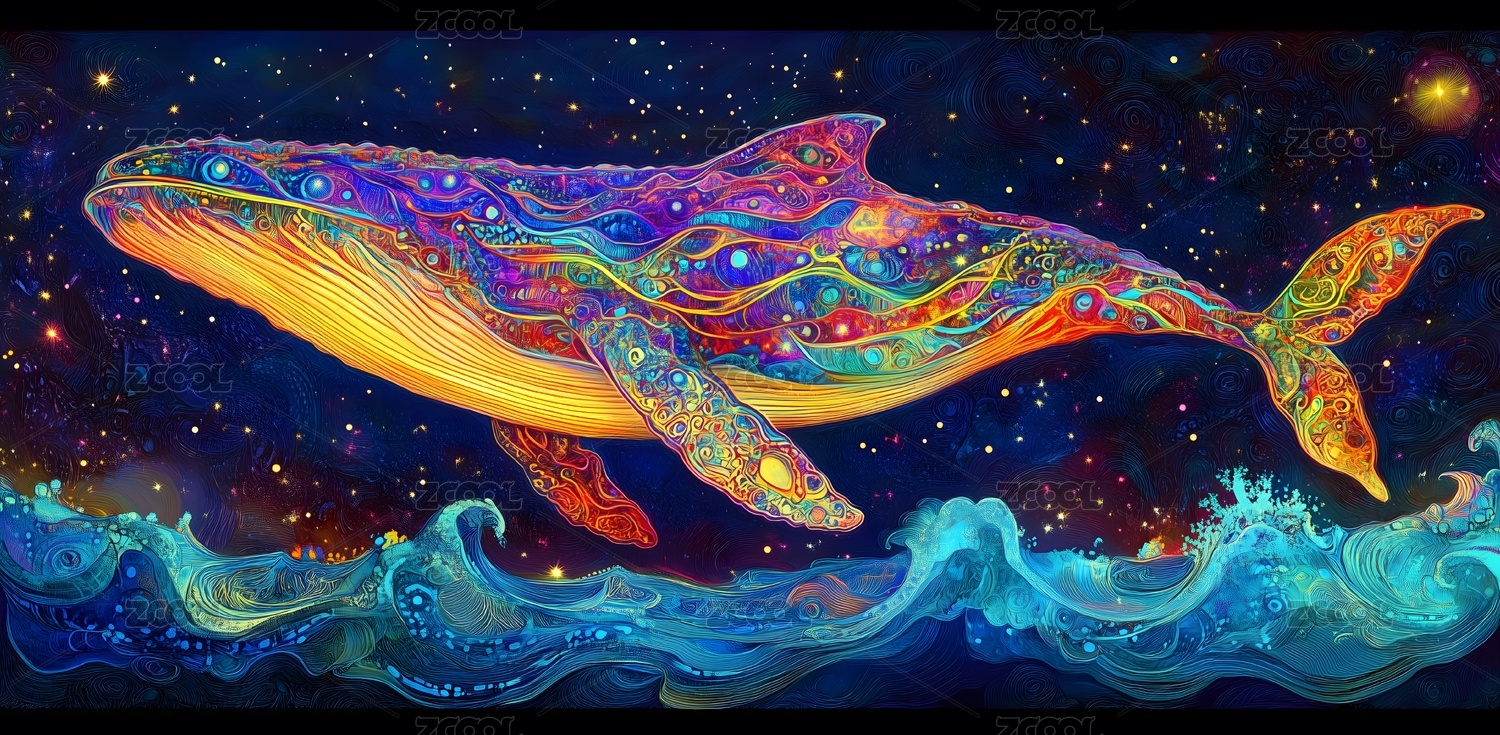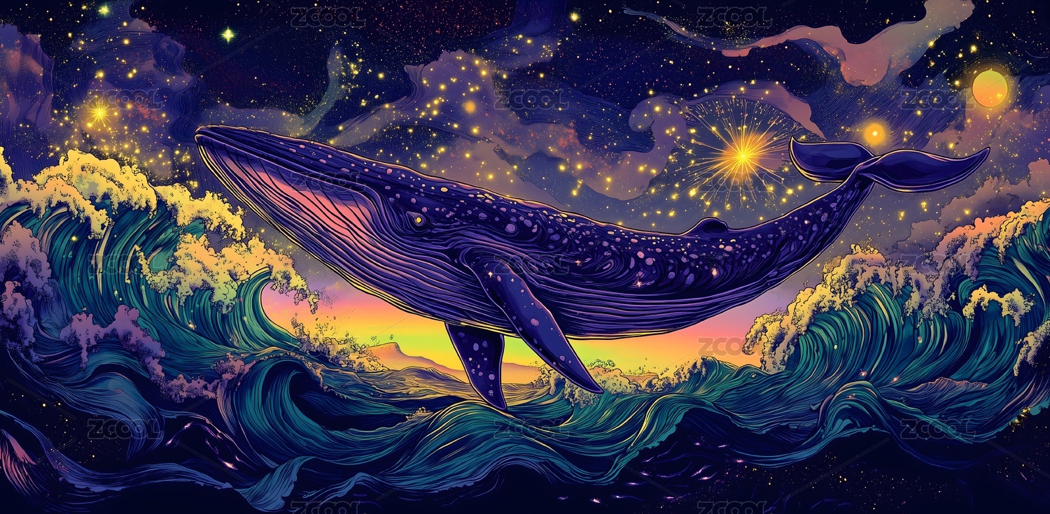 唯美星空鲸鱼梦幻插画