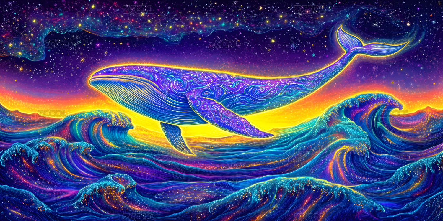 鲸鱼现代光效插画背景