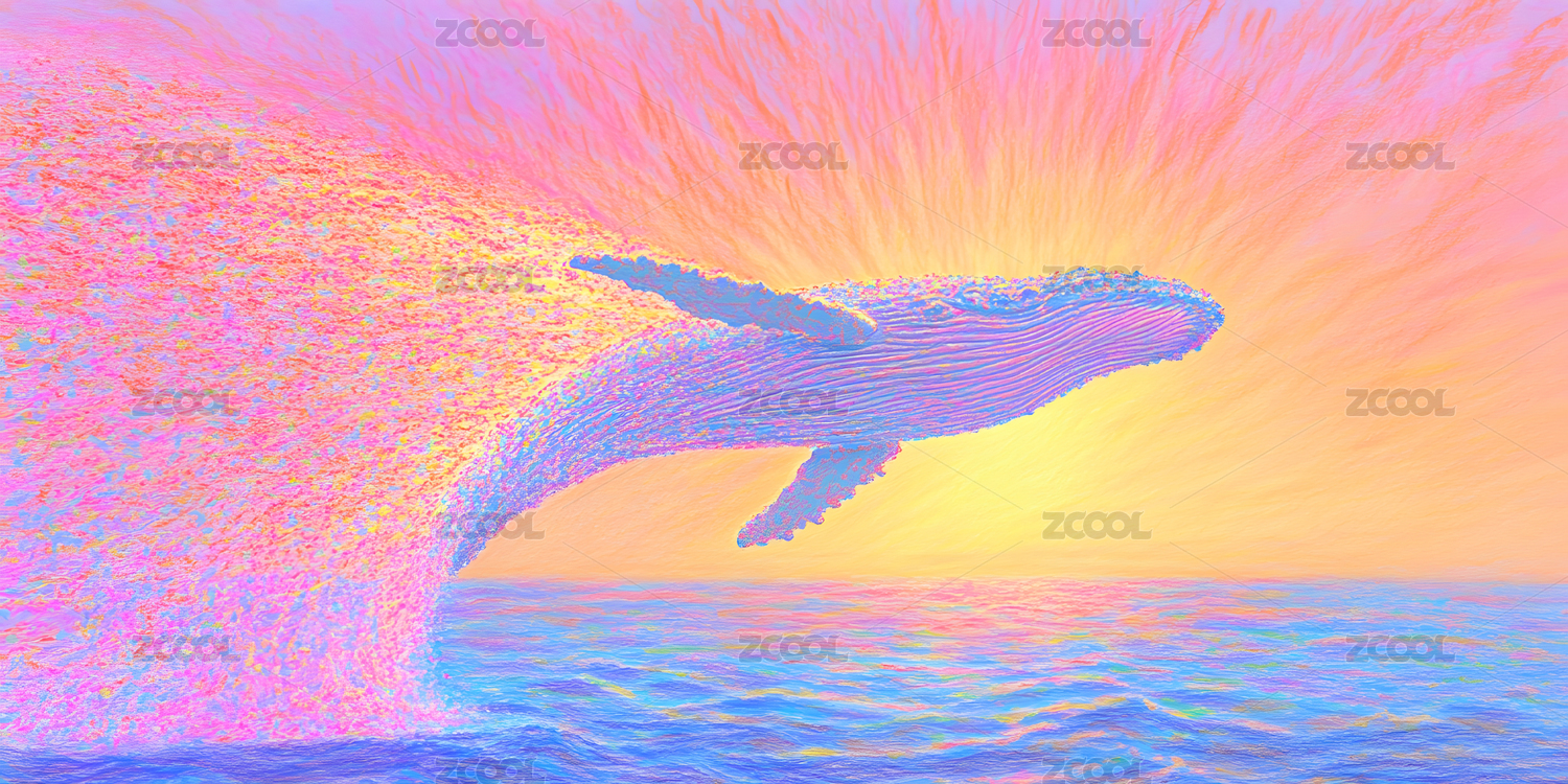 油画抽象鲸鱼跃出海面背景