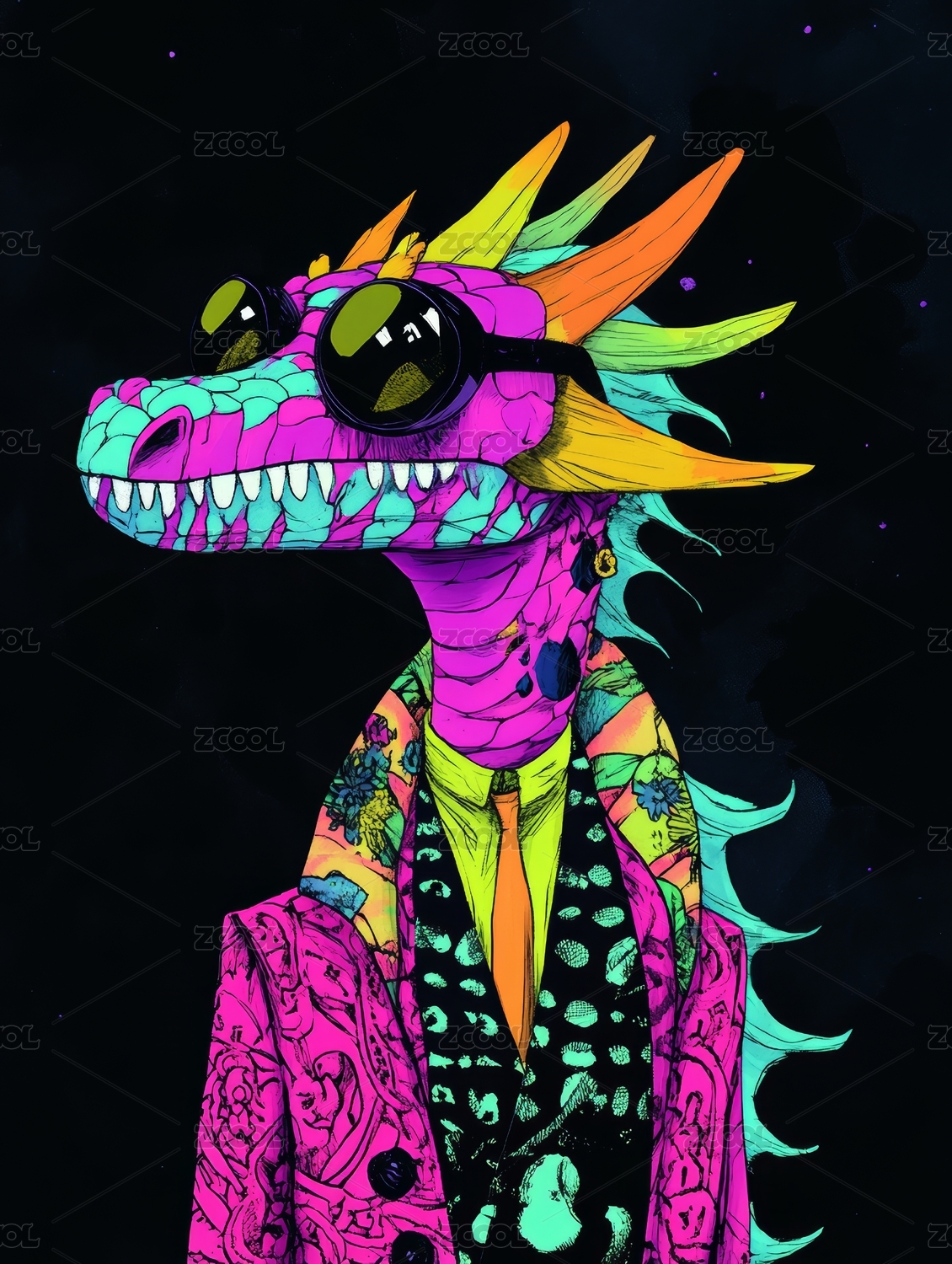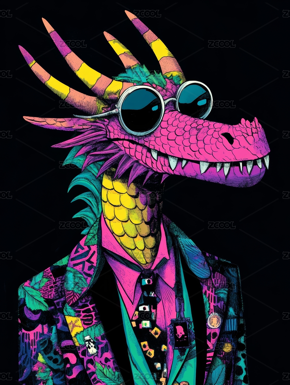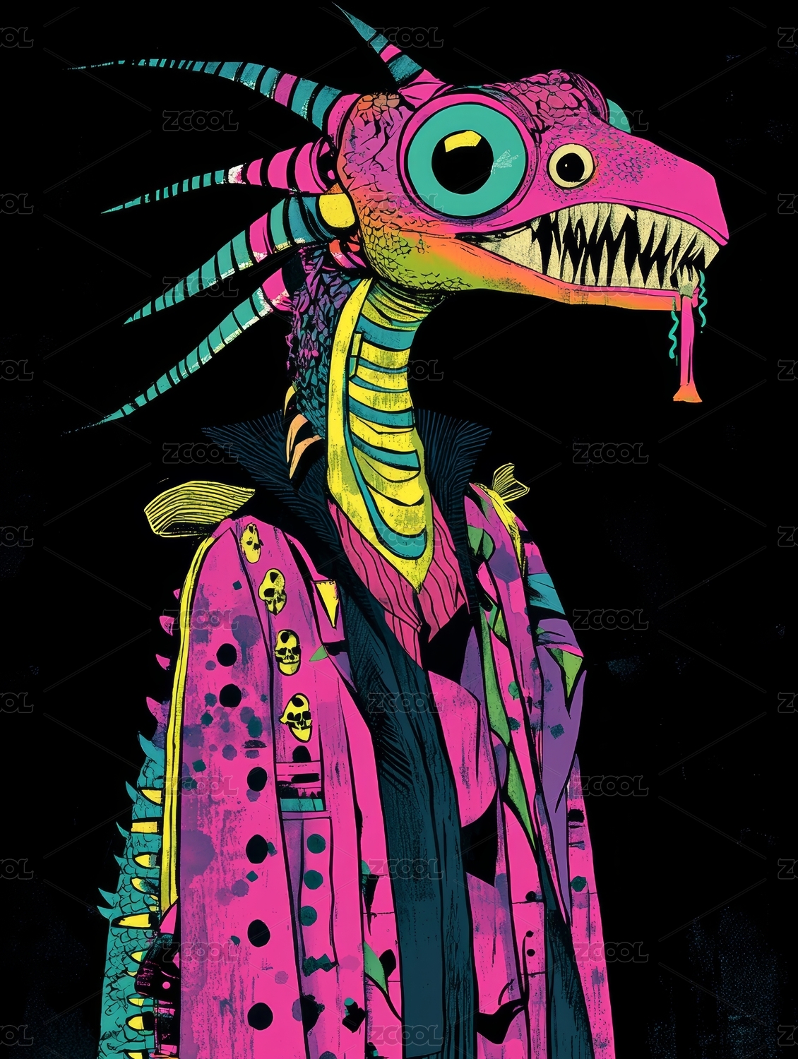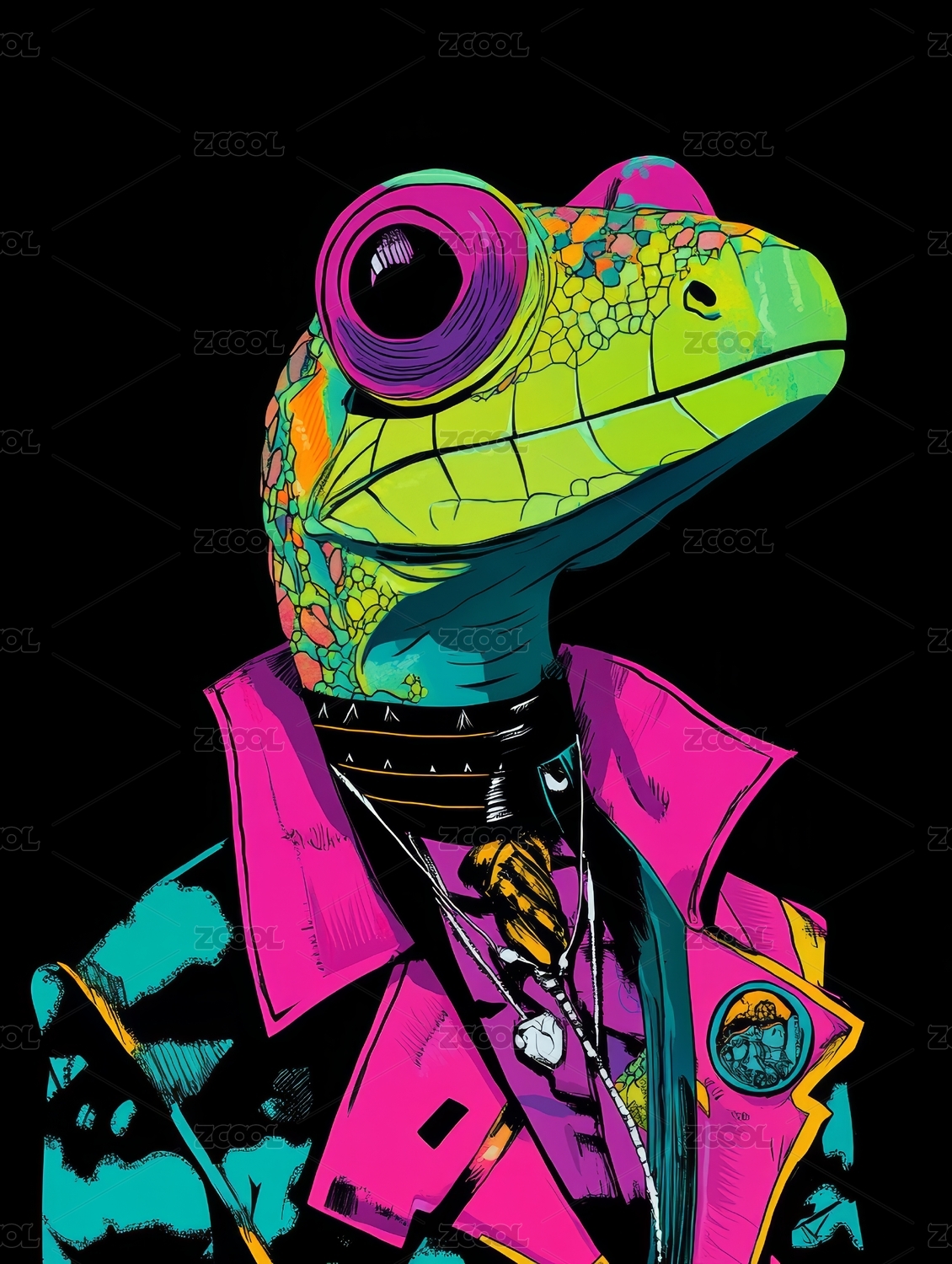 嘻哈时尚涂鸦潮流风格鳄鱼蜥蜴插画