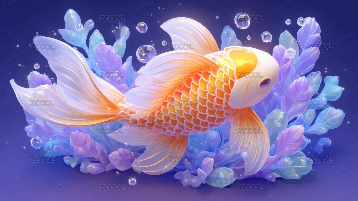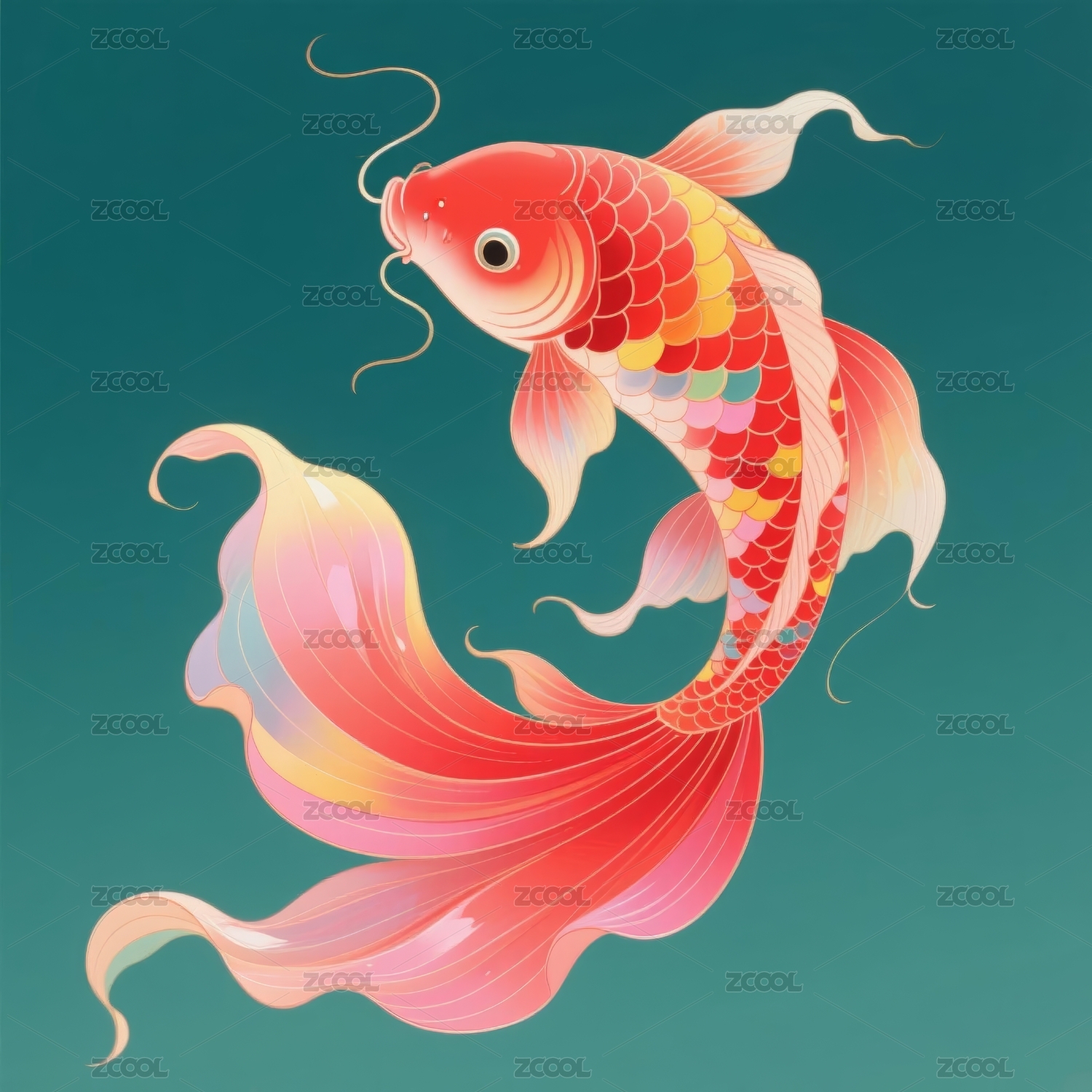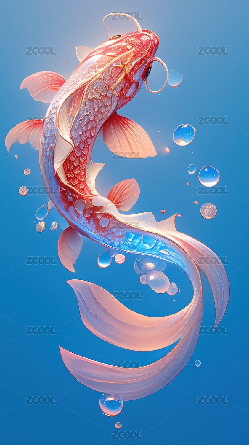 一条龙鱼锦鲤全息色彩3D插画