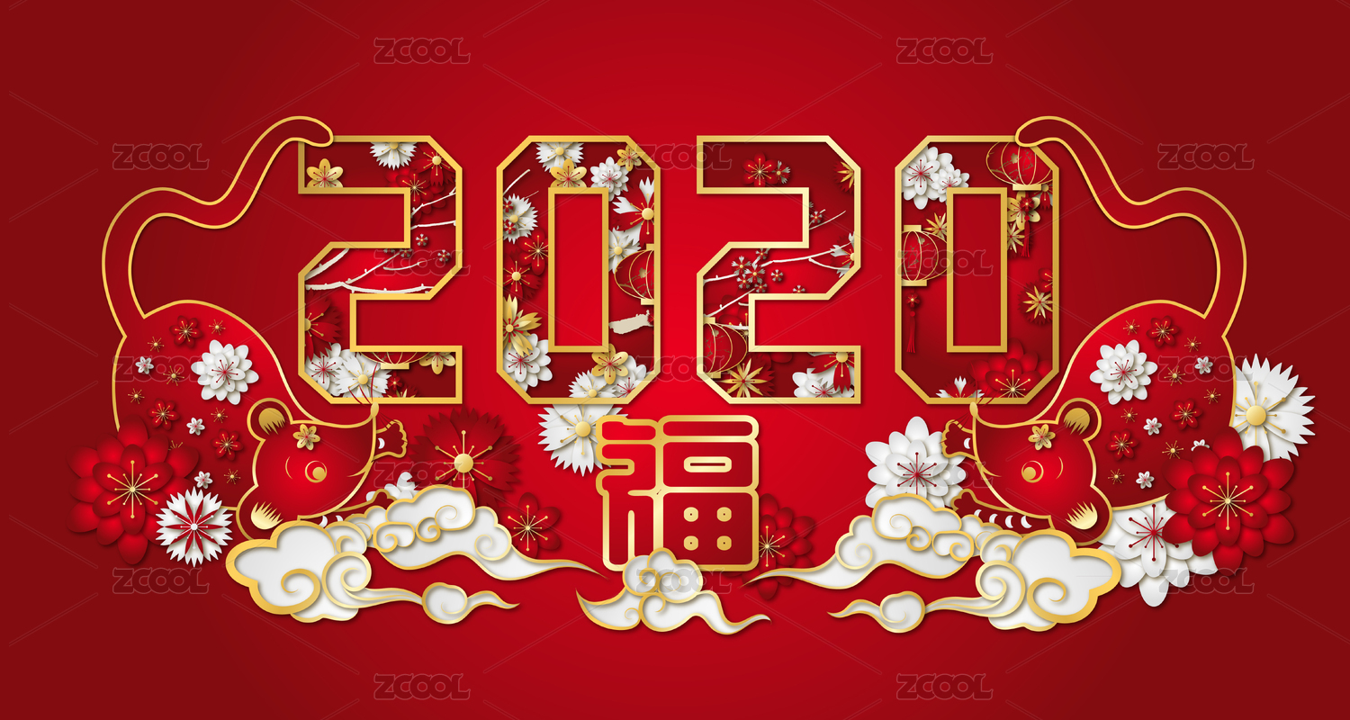 新年2020年鼠年春节剪纸风格的海报插画背景