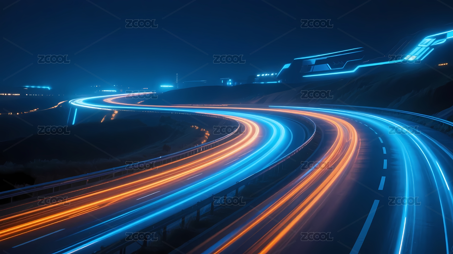 蓝色,氛围,灯光,未来,科技,空间,现代,创意,光轨,公路