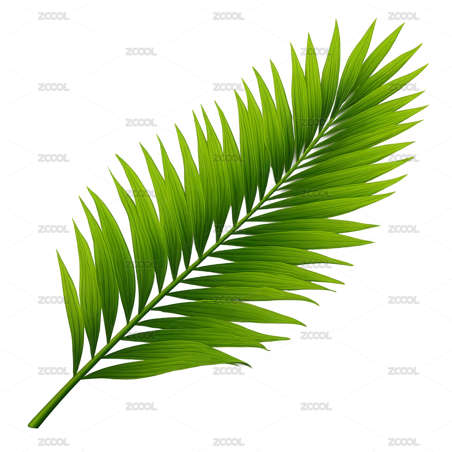 一片翠绿的棕榈叶,叶片狭长