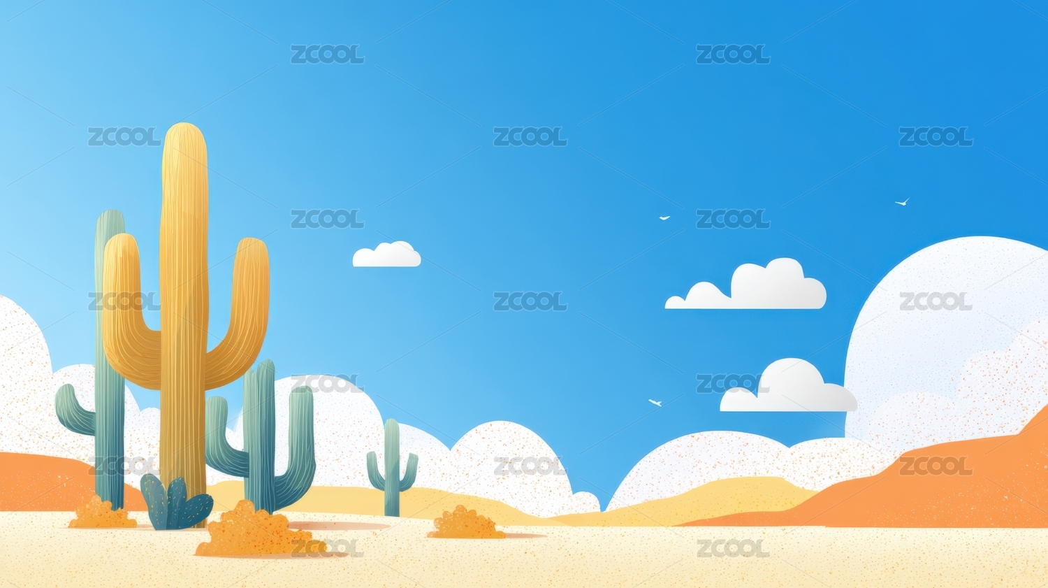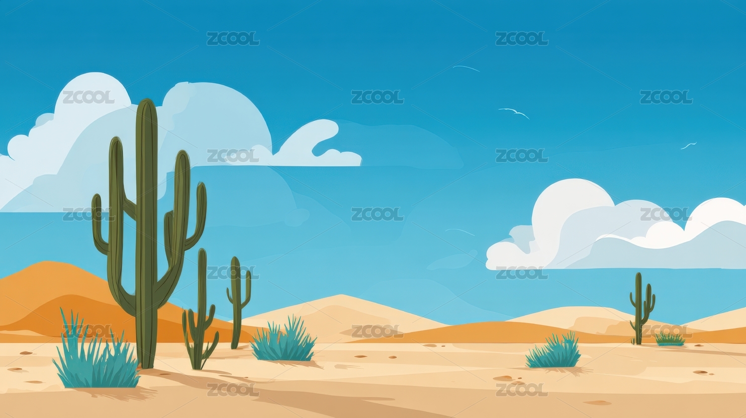 沙漠荒漠大山枯草蓝天白云仙人掌