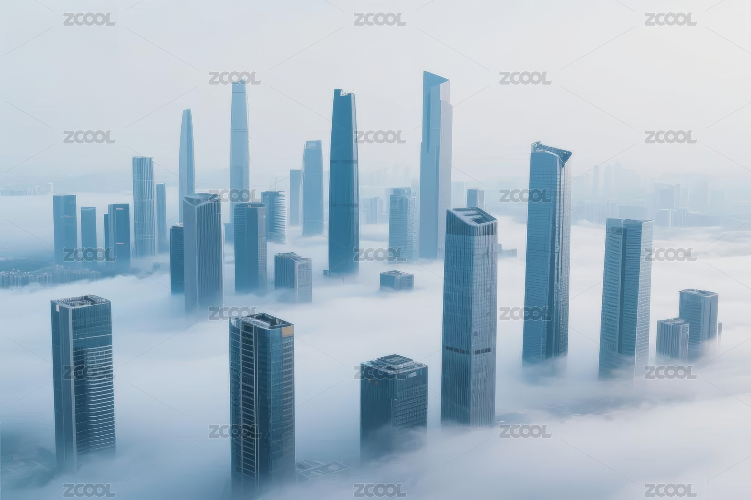 城市,高塔,云雾,晨曦,现代化,高楼大厦,建筑物,山脉,天空,蓝色