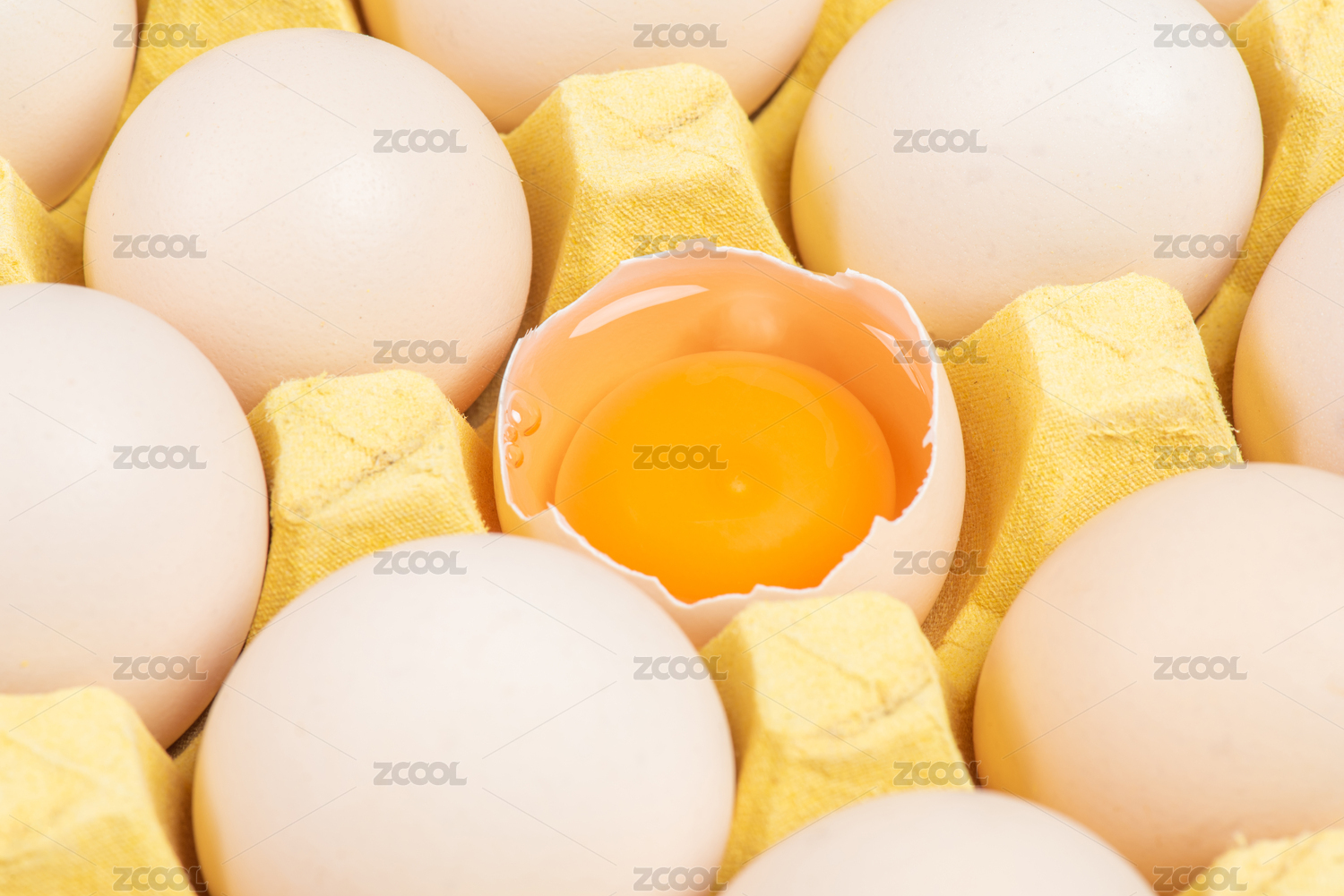 一个打开的鸡蛋和一盒鸡蛋,展示,健康的食物