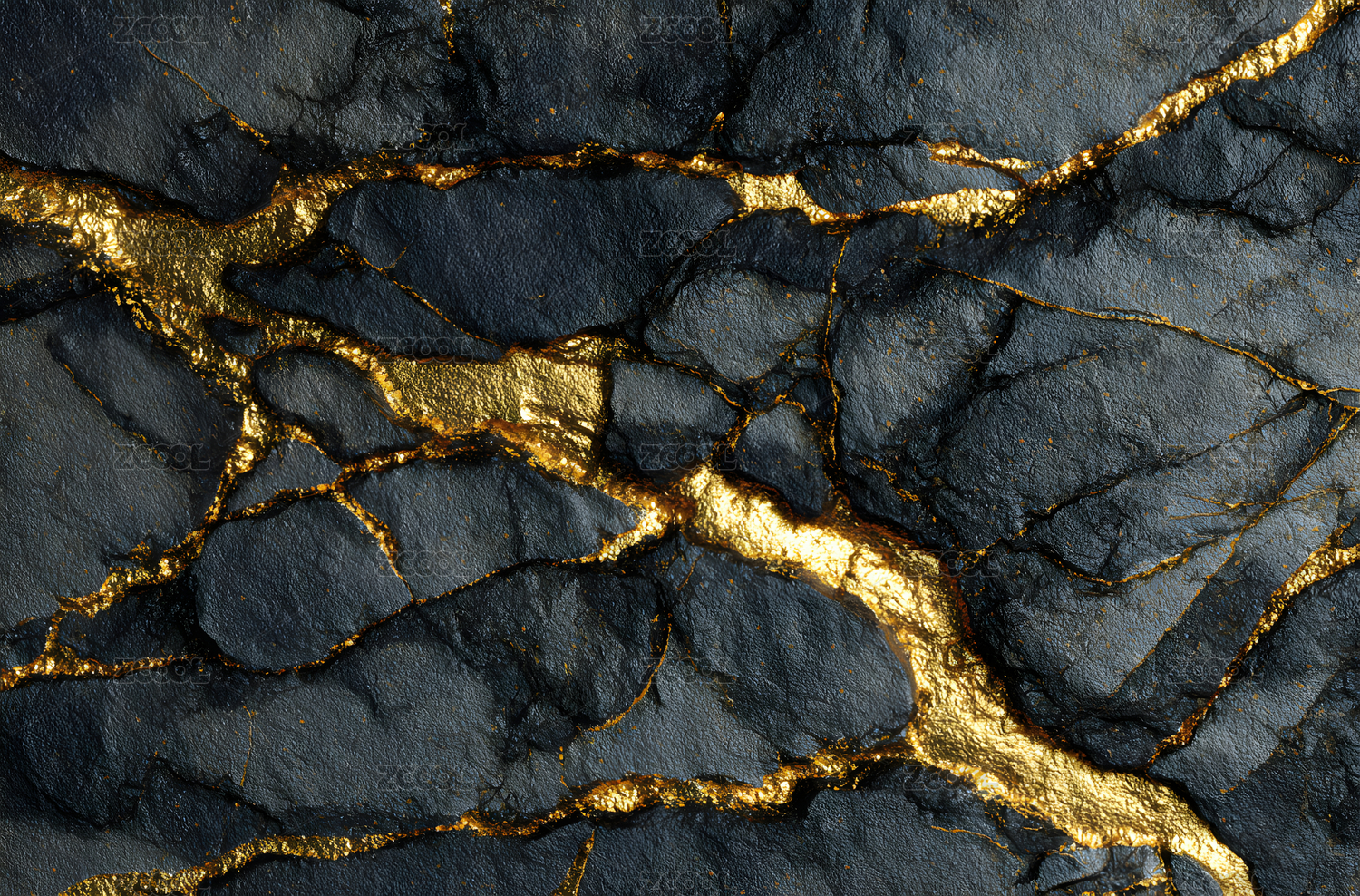 金线镶嵌黑色岩石纹理