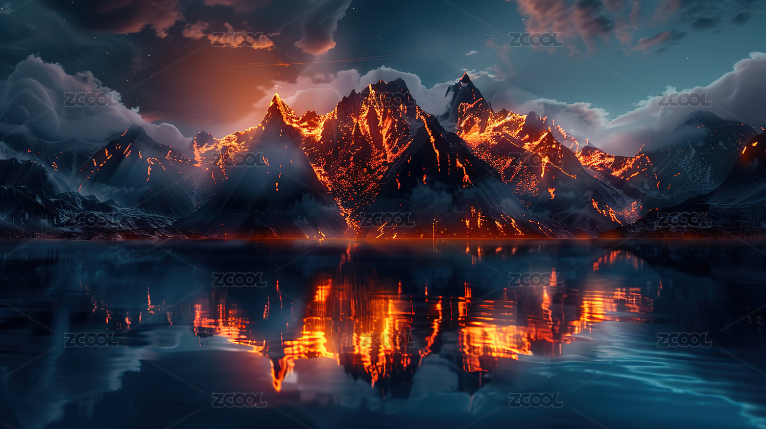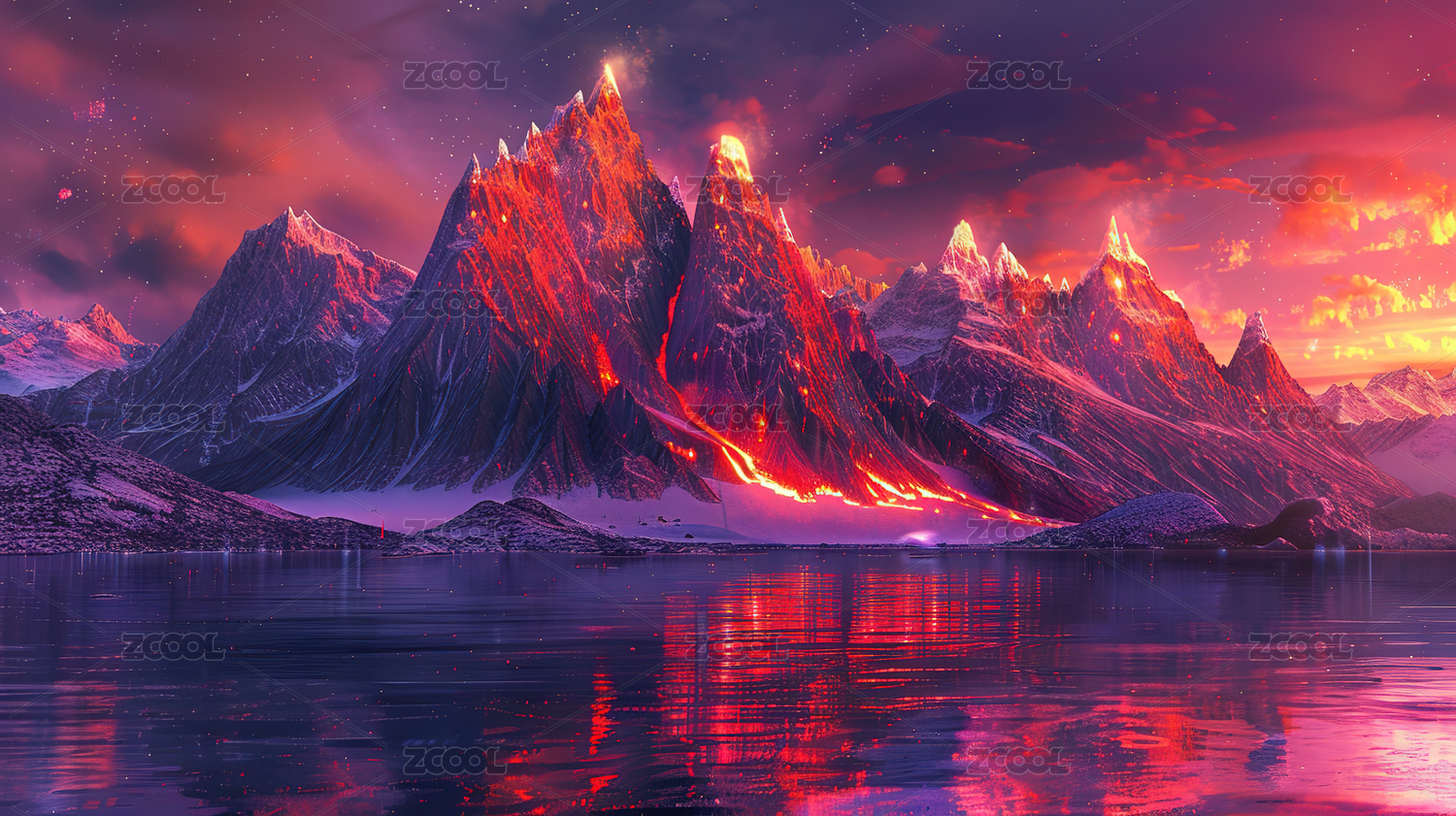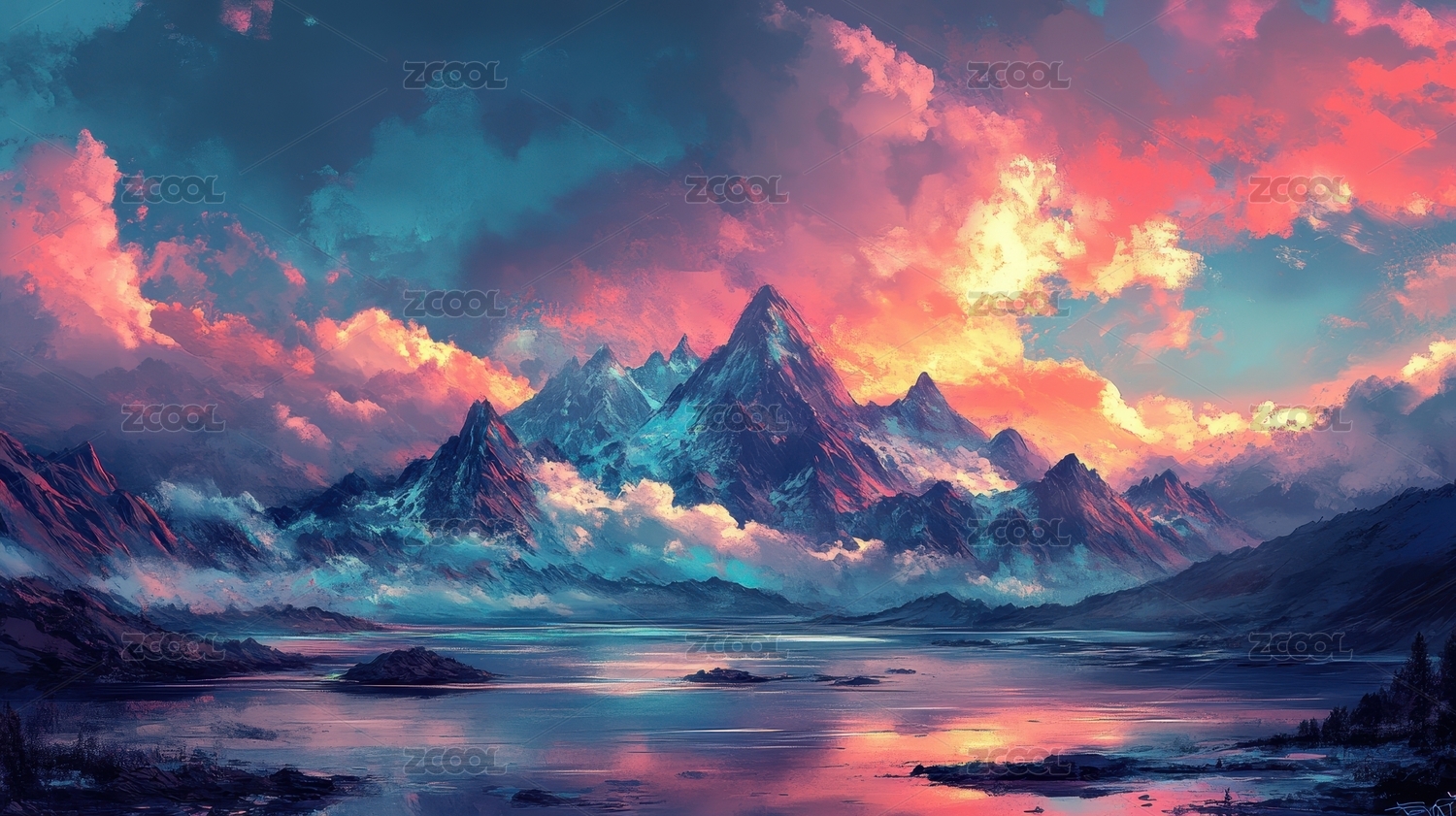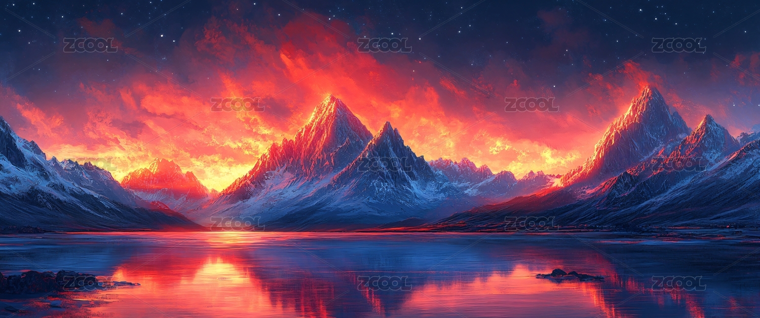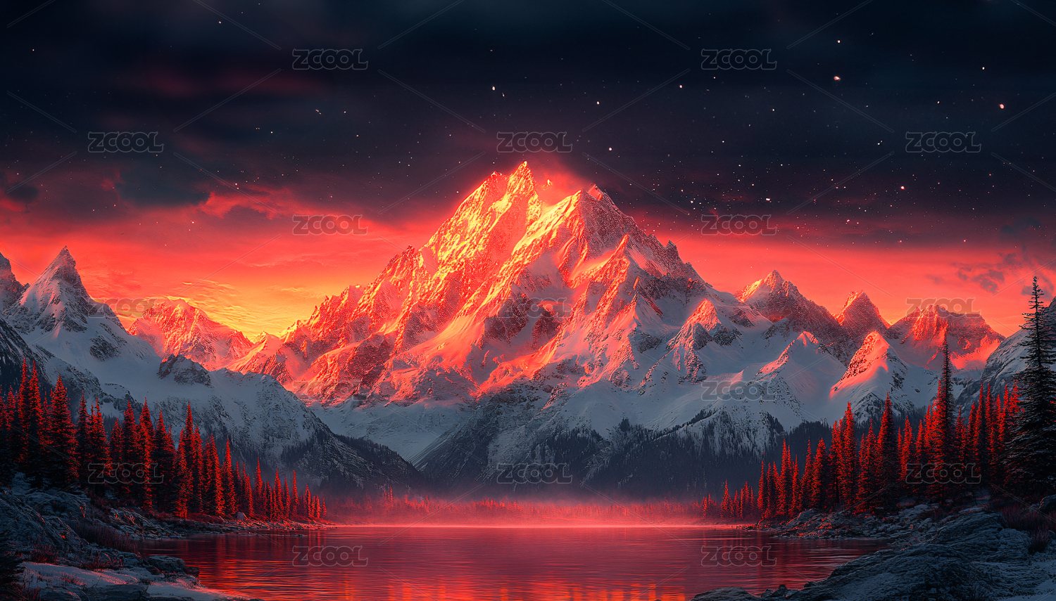 山峰,山脉,最高峰,喜马拉雅山,夕阳,火烧云,天空,晚霞,高耸如云,云端