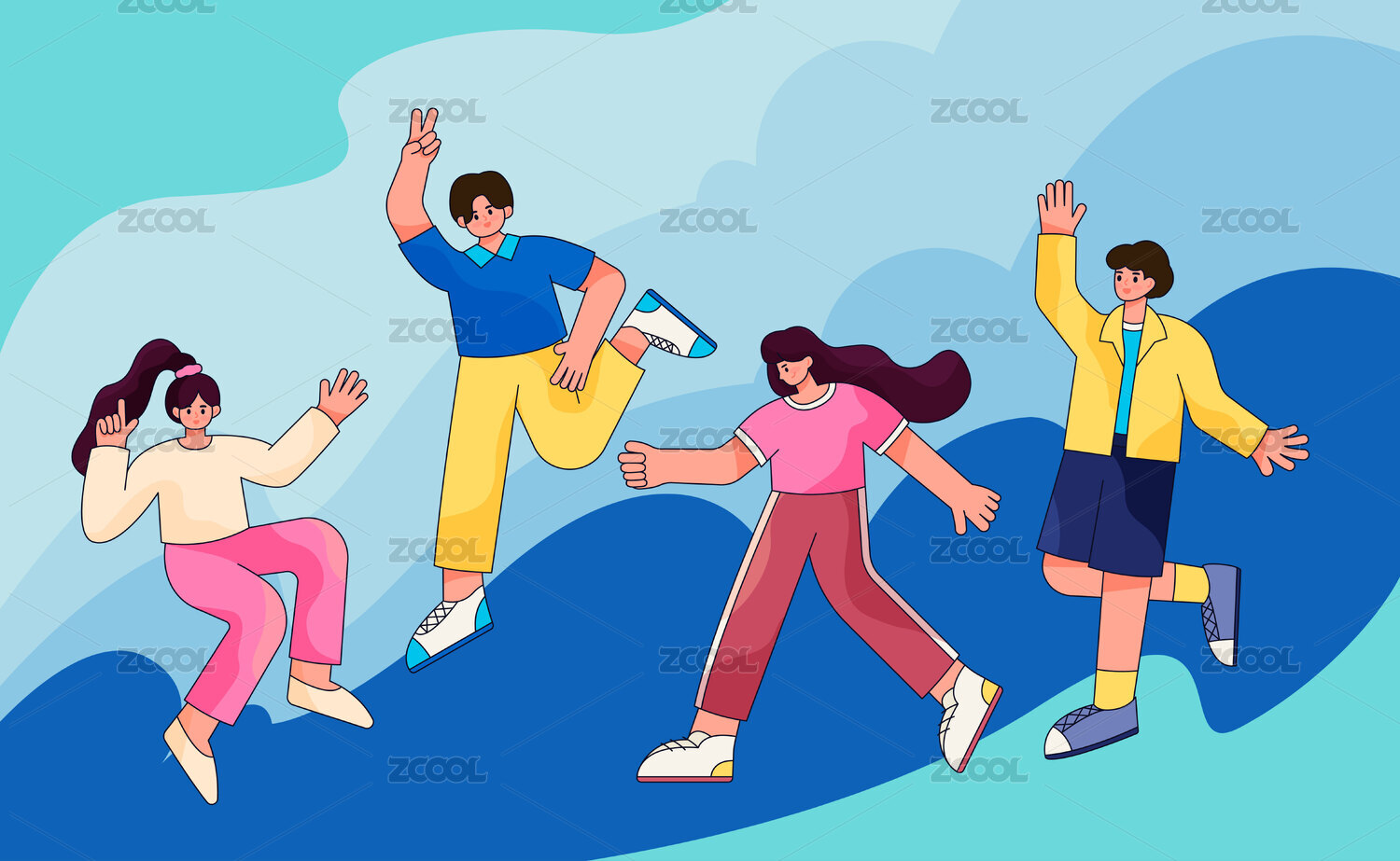跳跃欢呼的青少年插画