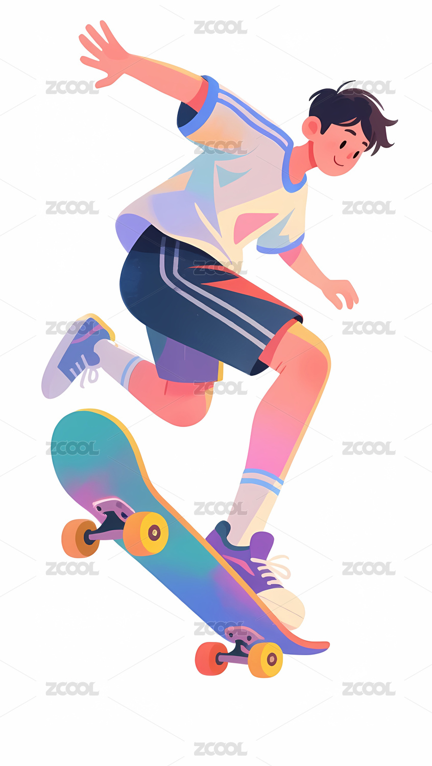 滑板运动,滑板,滑板少年,板仔,插画,卡通,人物