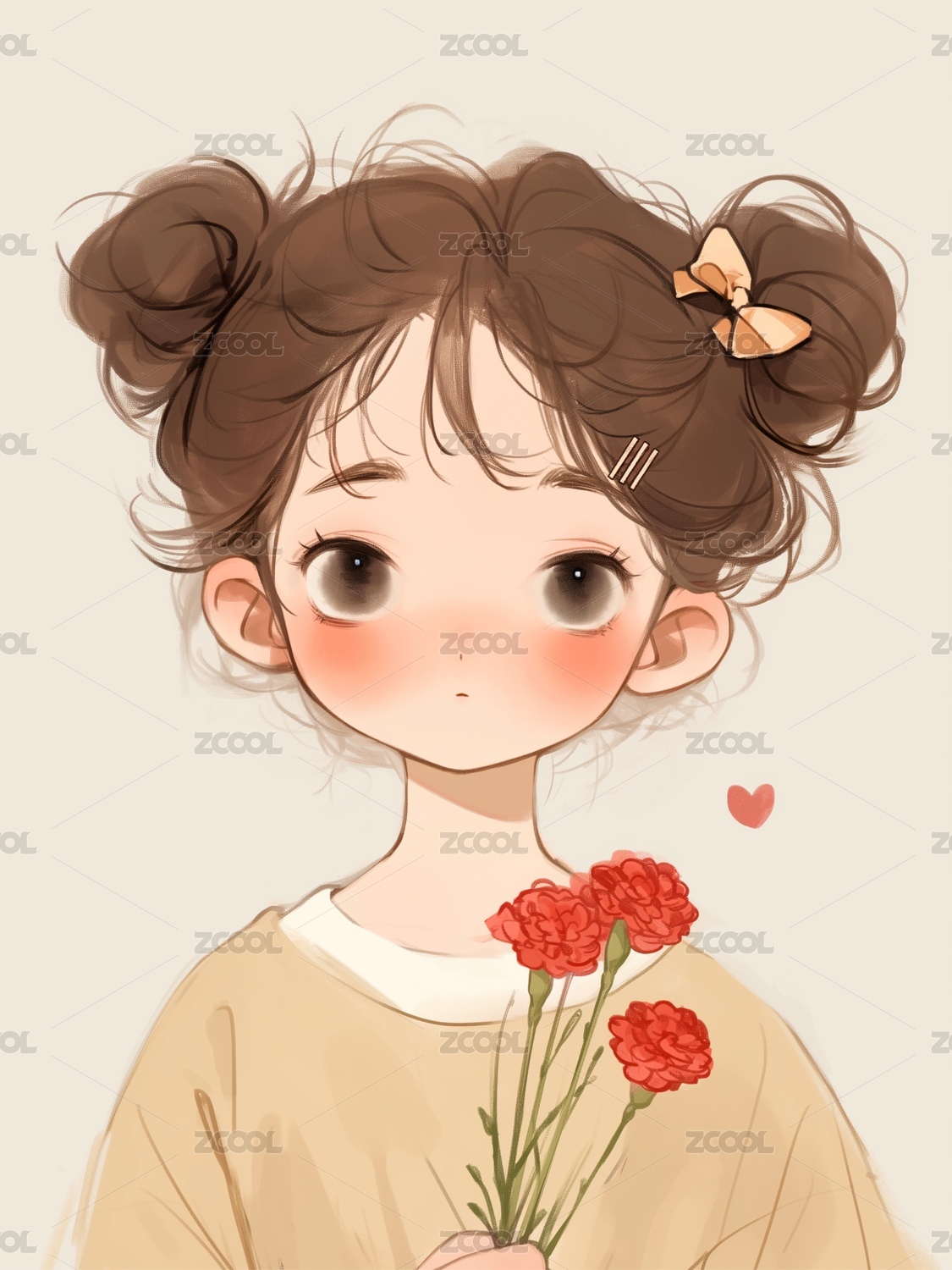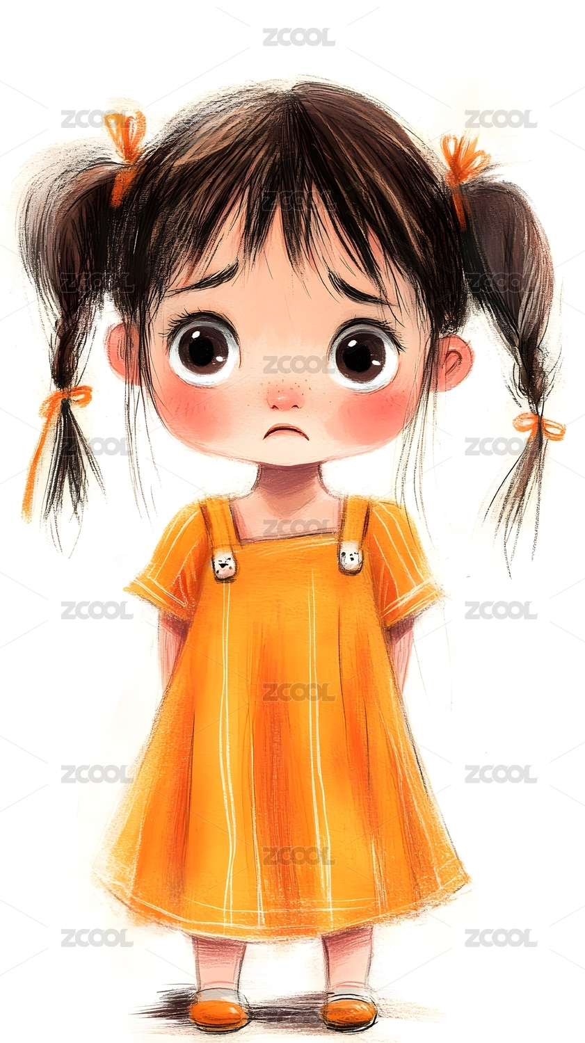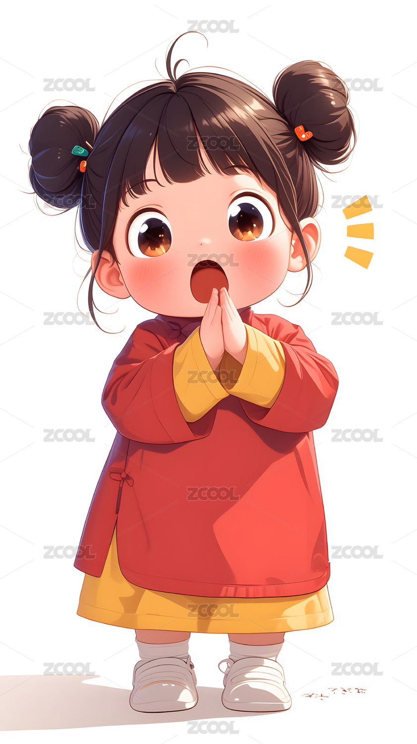手绘卡通可爱的穿着红色唐装的女孩插画