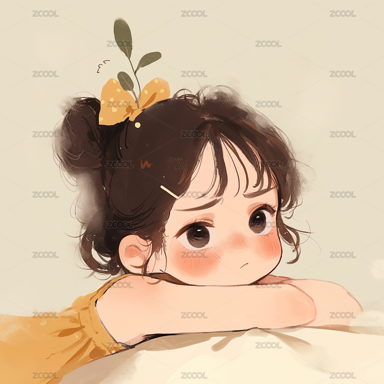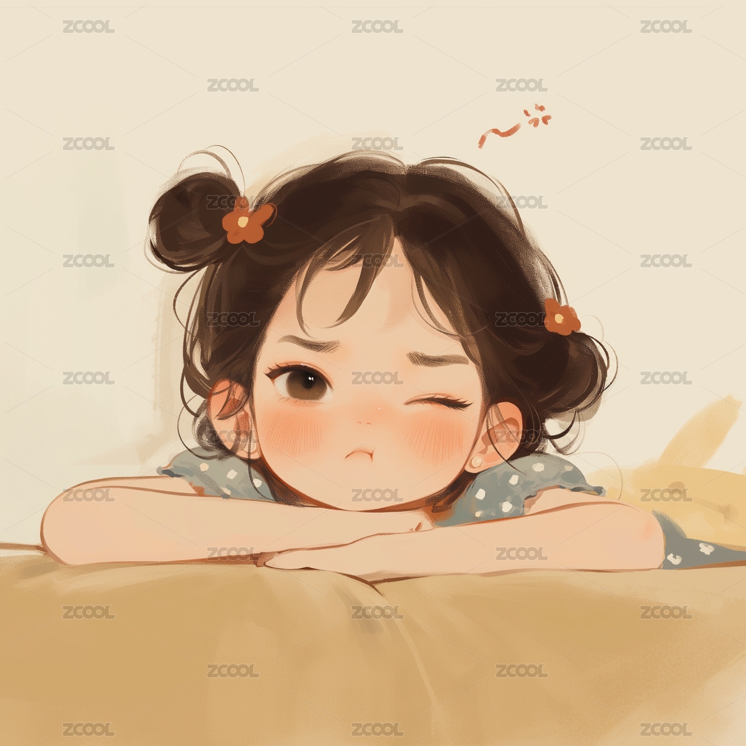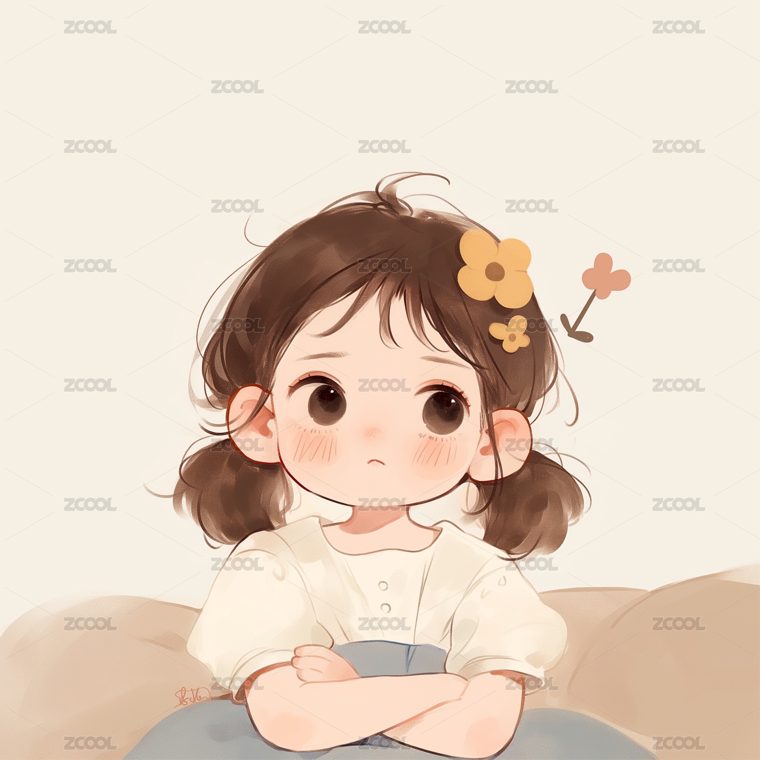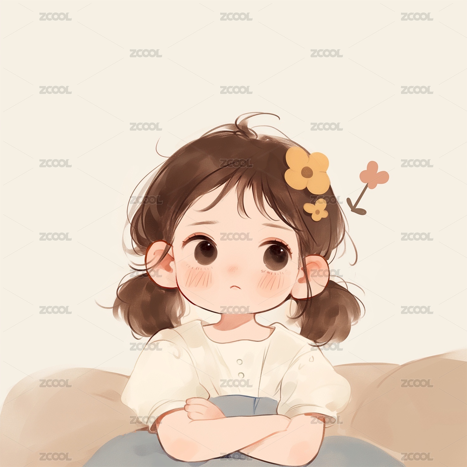 手绘卡通可爱的穿着红色唐装的女孩插画