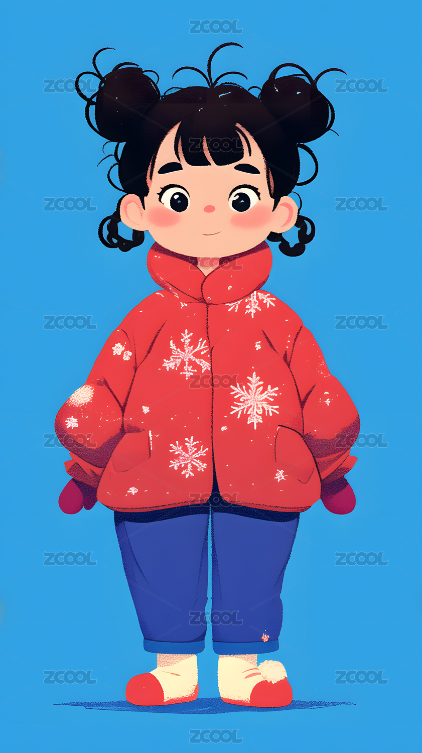 冬天穿着红色棉袄的可爱女孩卡通插画