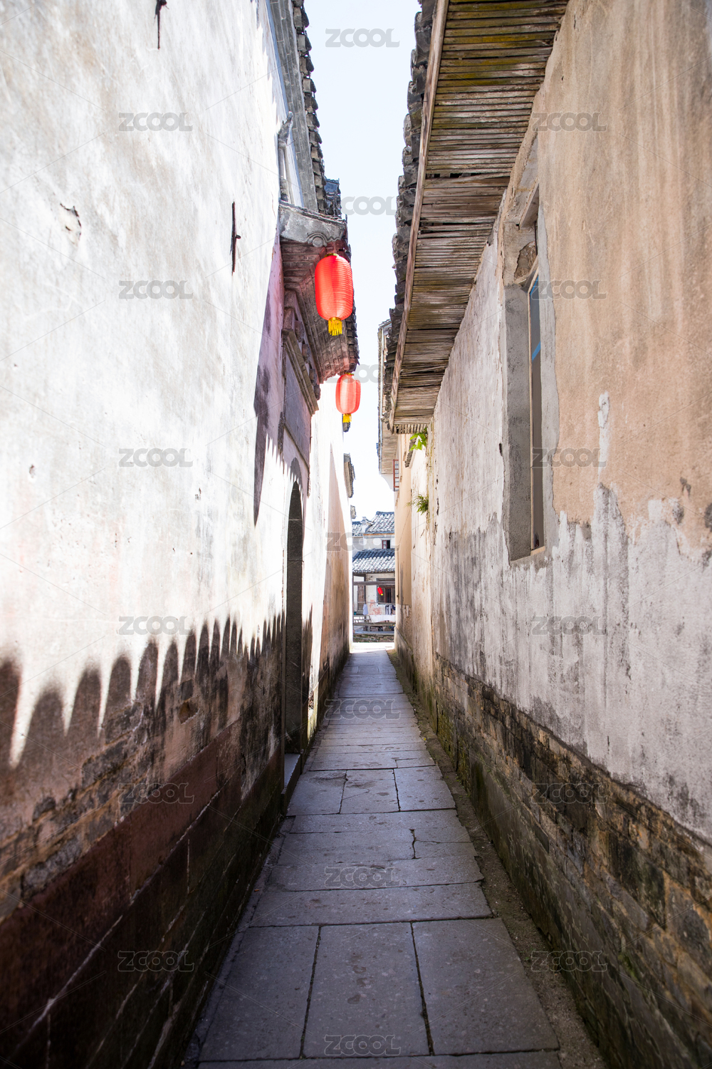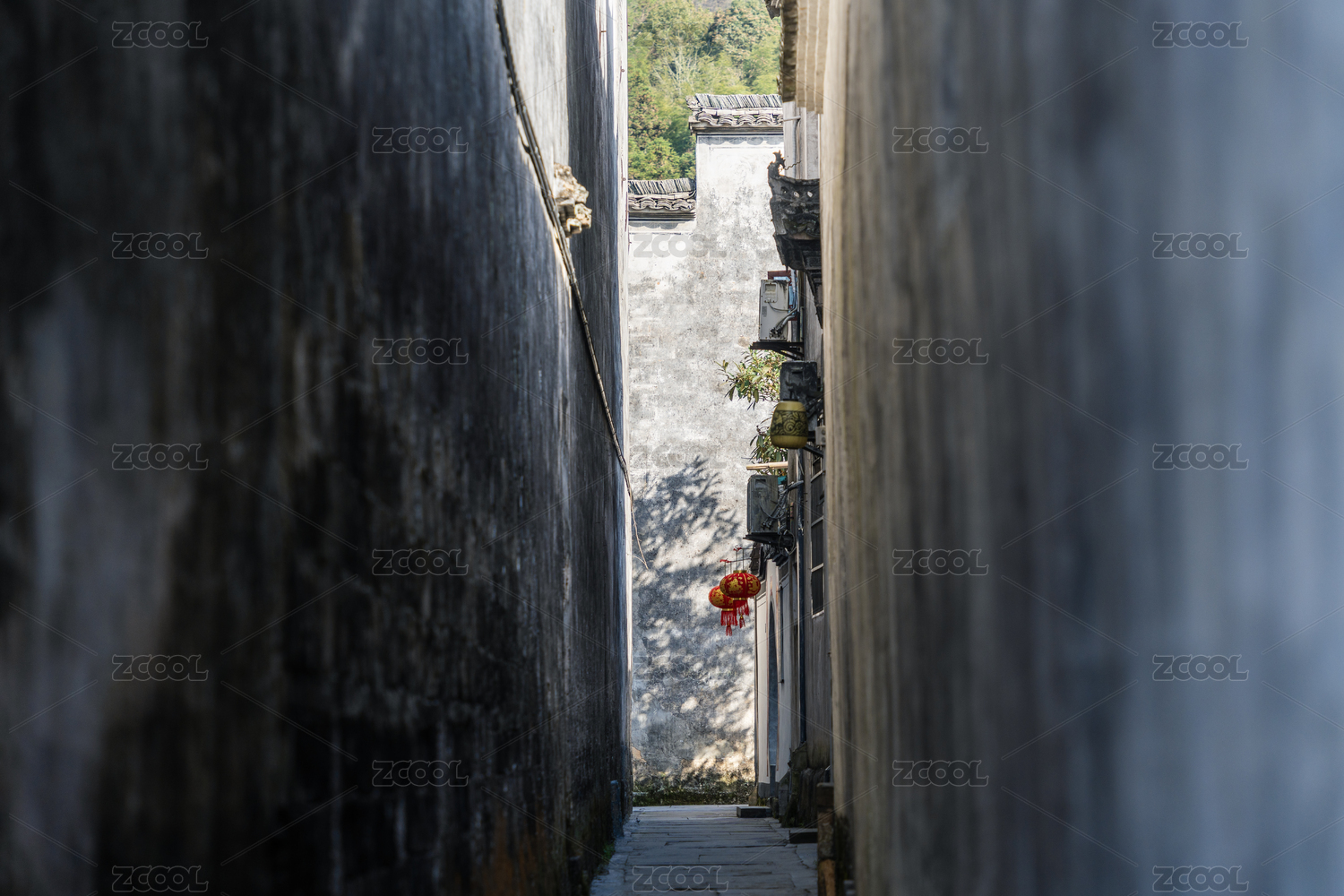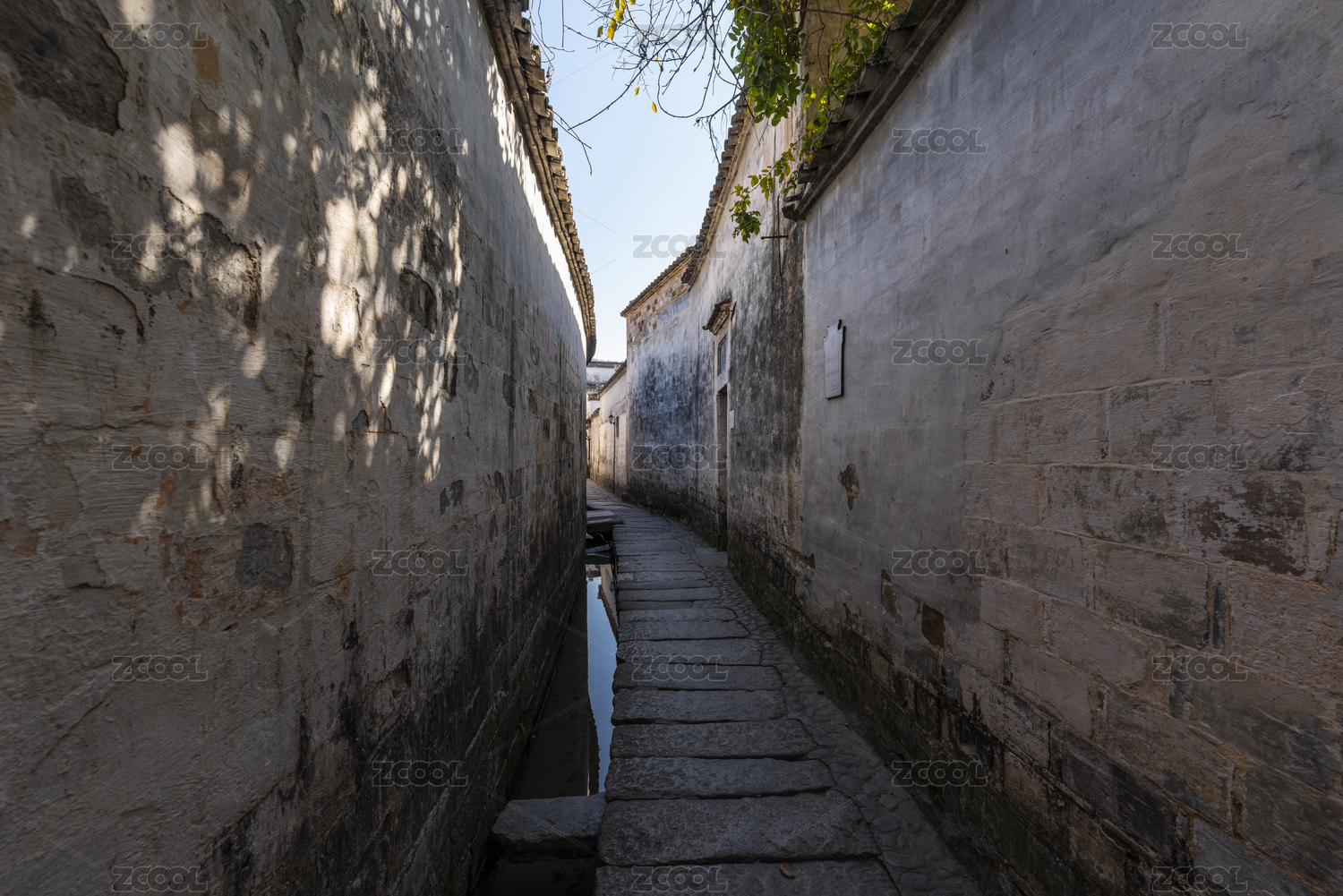 安徽黄山宏村徽派古典建筑的青石板路巷子