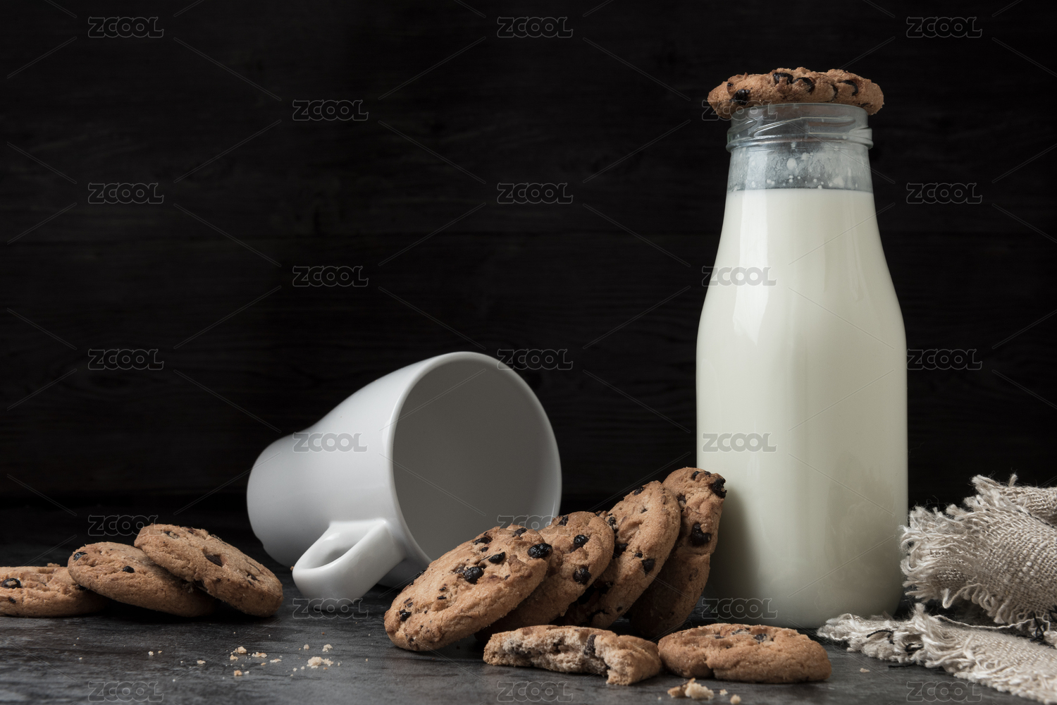 早餐 甜品 牛奶 饼干 曲奇 影棚 黑背景 美食 烘焙 健康