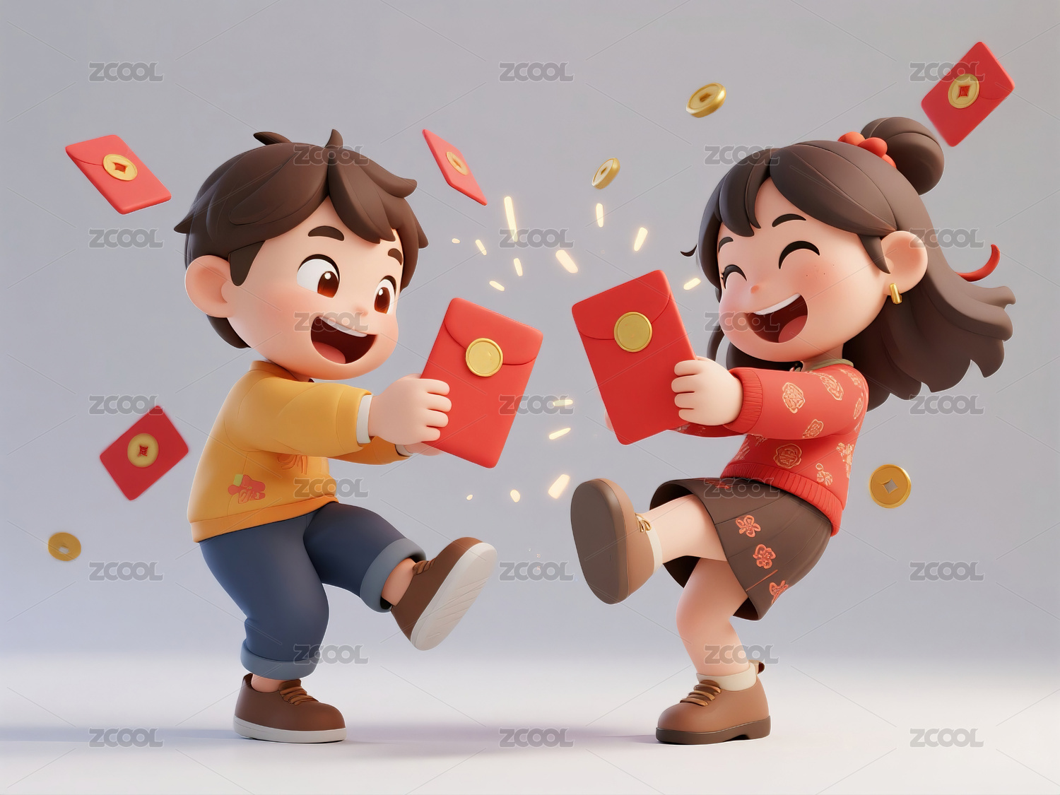 春节红包人物背景