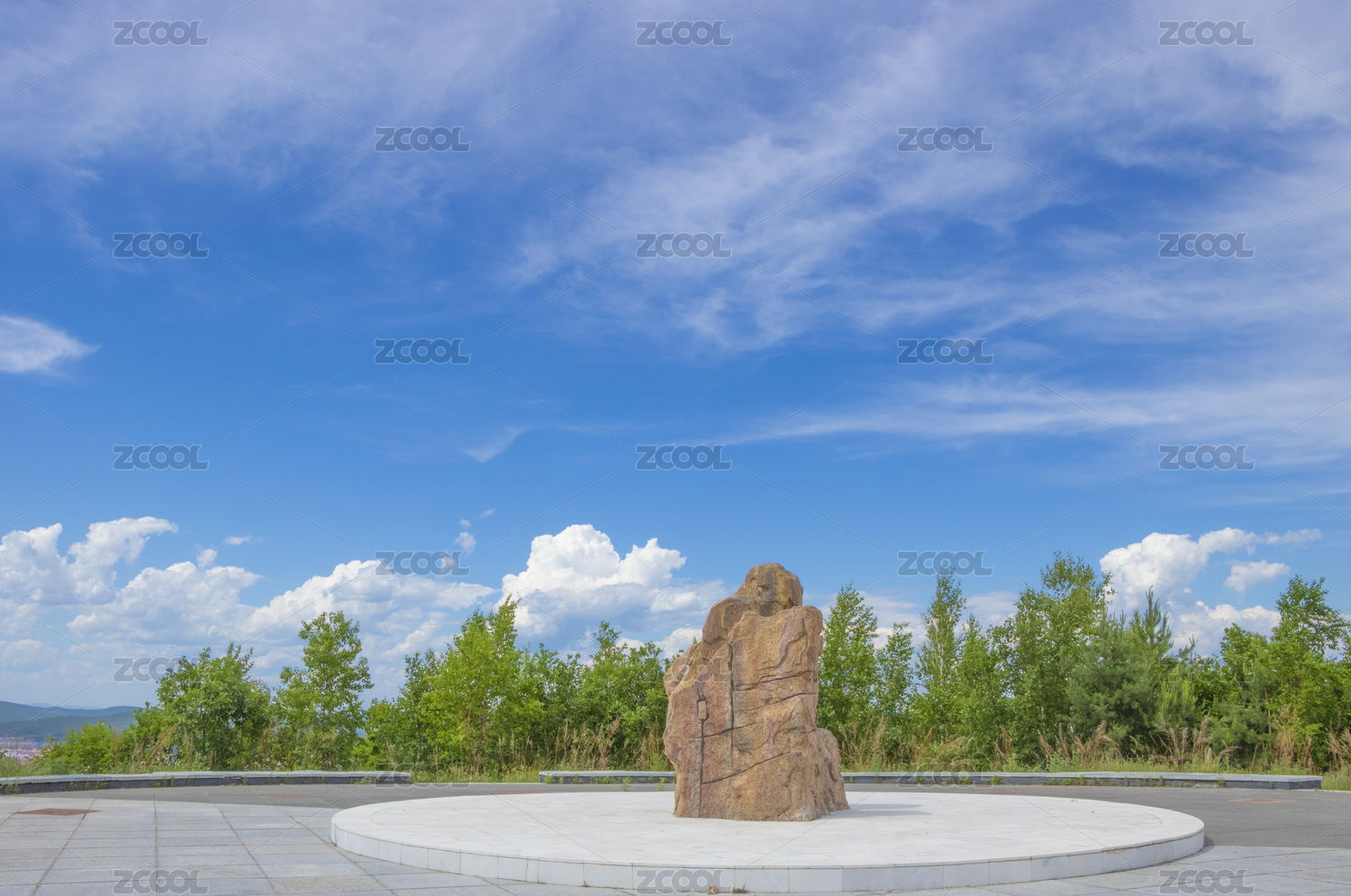 中国大兴安岭加格达奇山顶的雕塑与平台