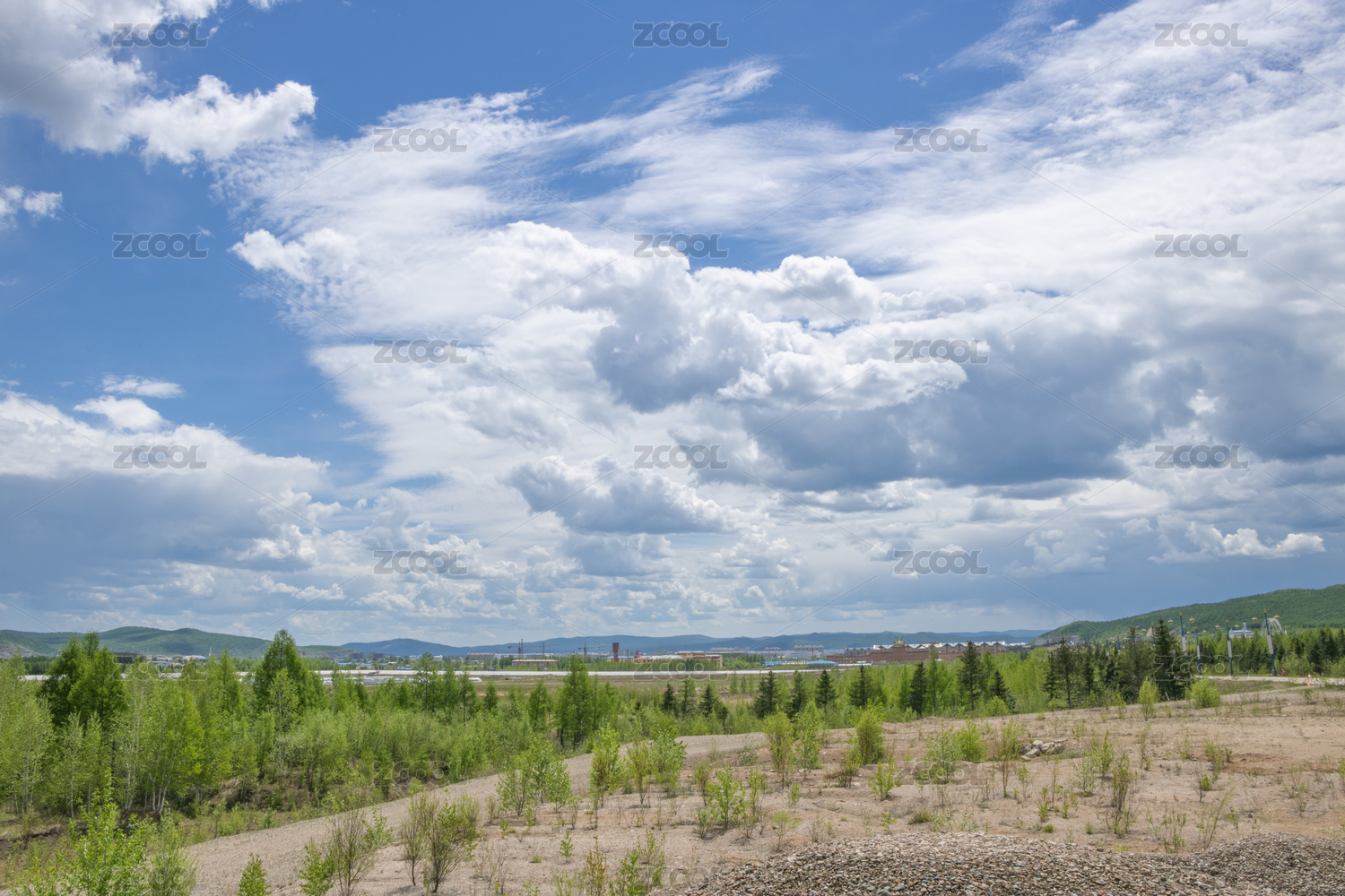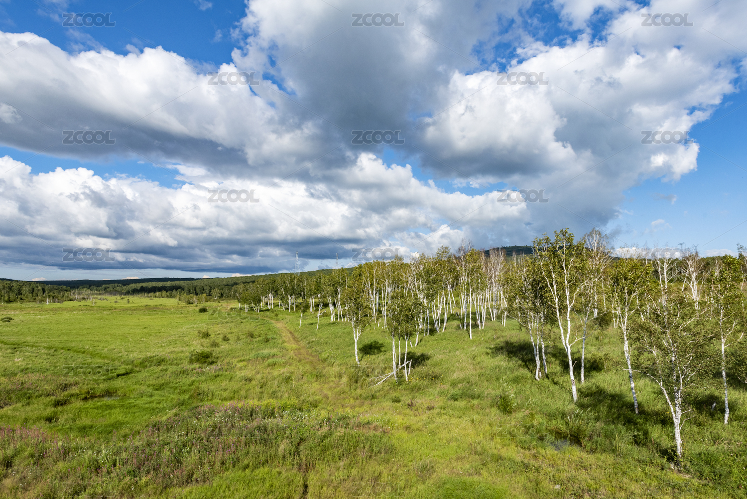 中国大兴安岭生机勃勃的荒野中形状奇特的云