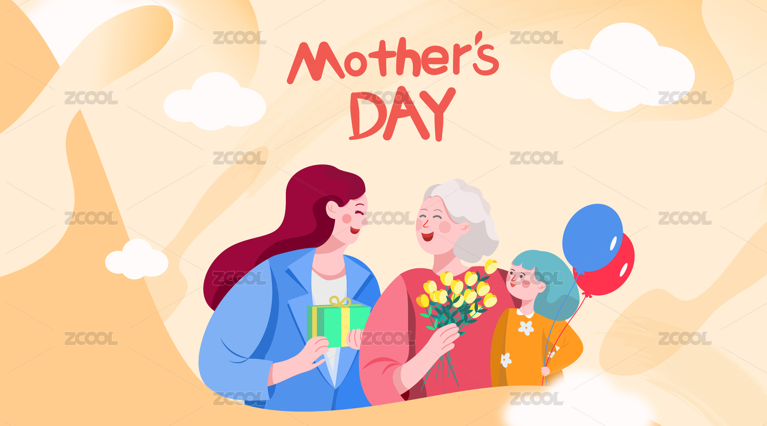 母亲节插画:女儿们拥抱妈妈,祝母亲节快乐!