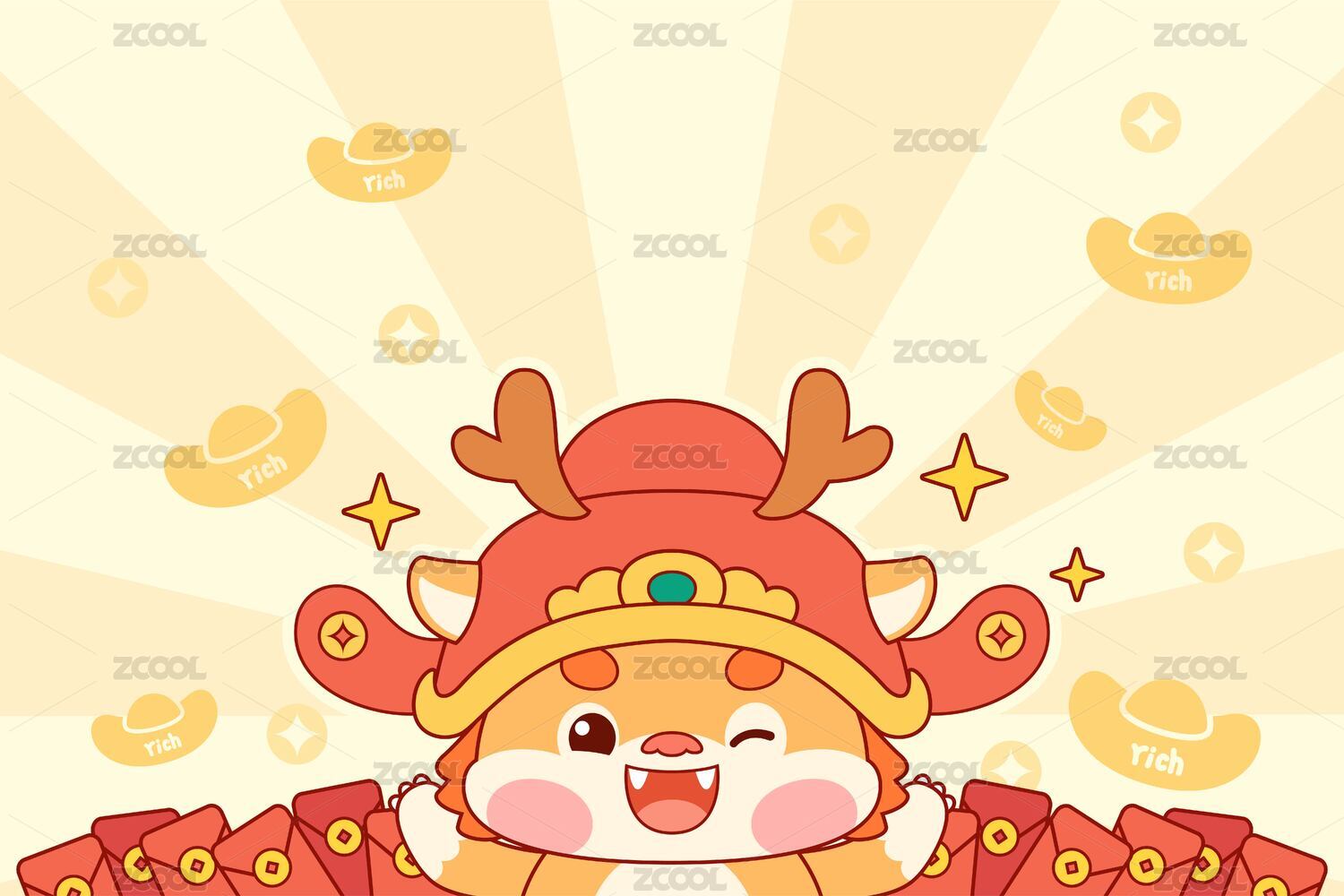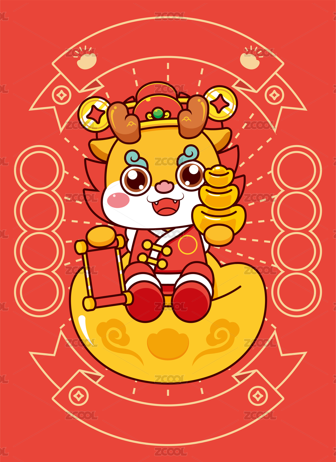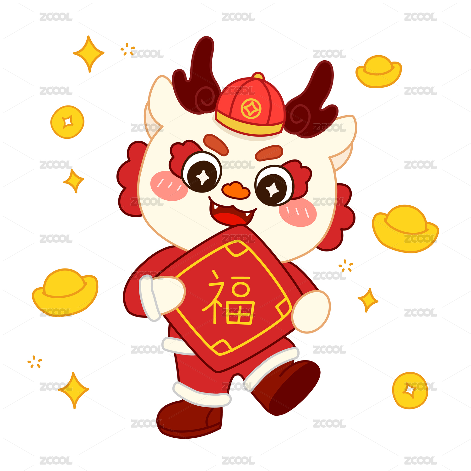 龙年新年春节招财进宝喜庆卡通Q版龙