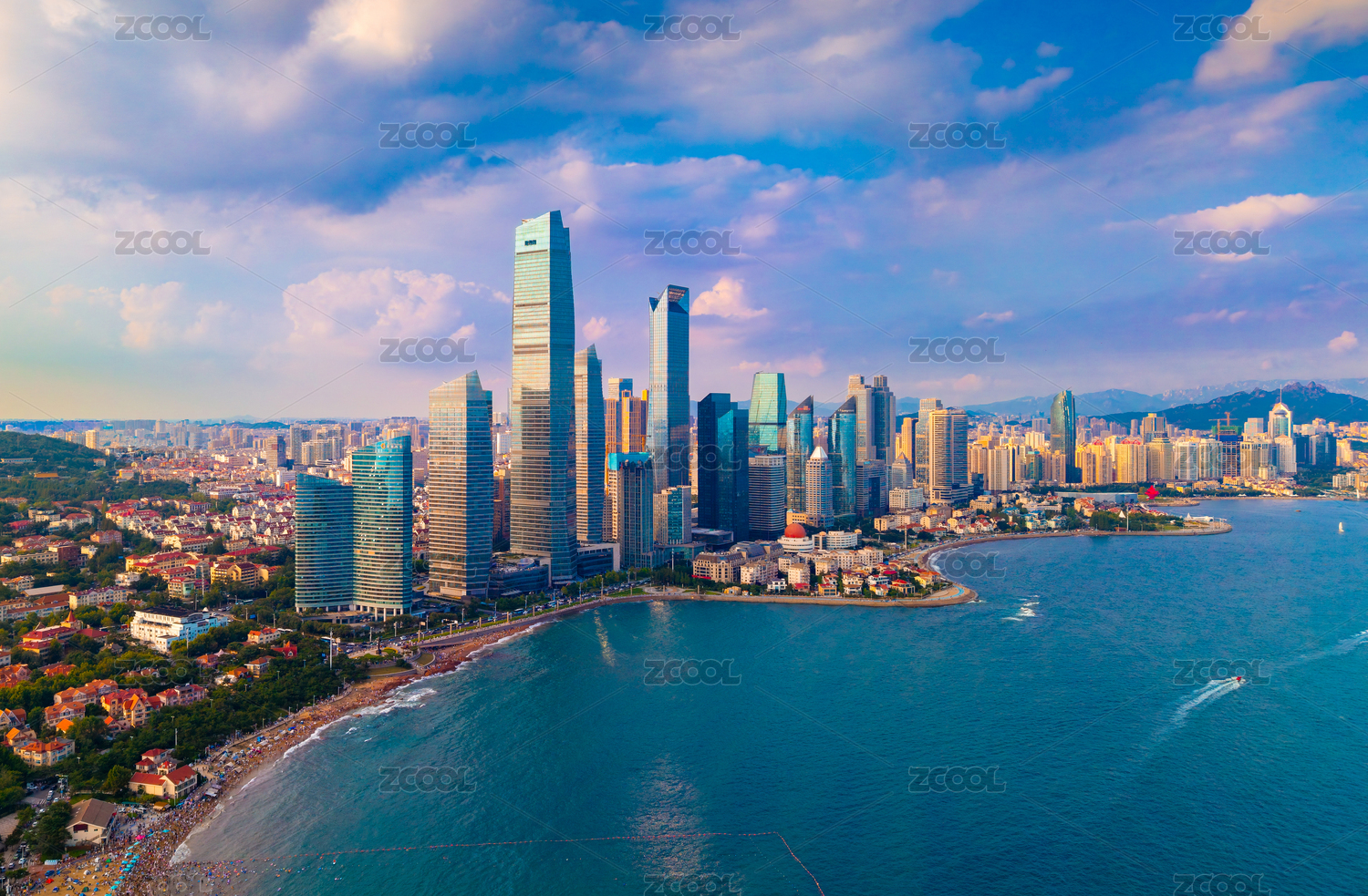 中国,山东,青岛,海滨,城市,沿海,风光,航拍,高楼,天空