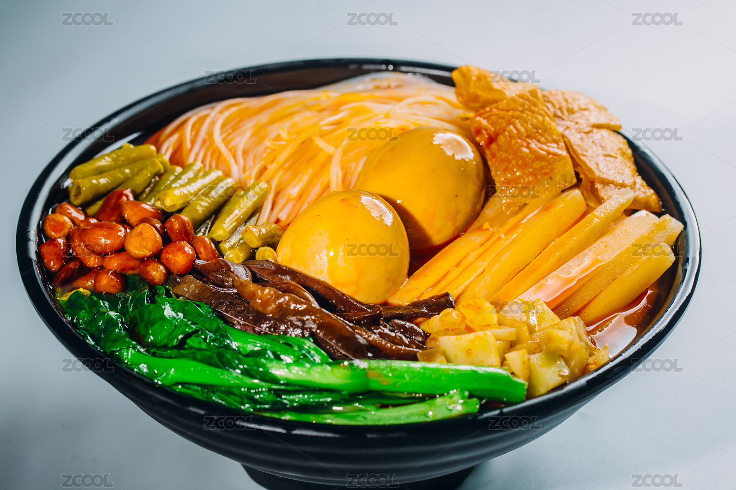 黑色碗里的鱿鱼花甲大虾麻辣海鲜米线