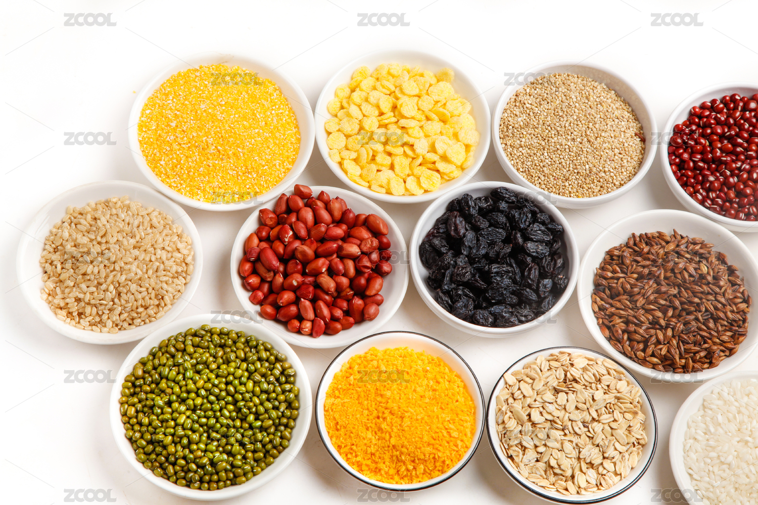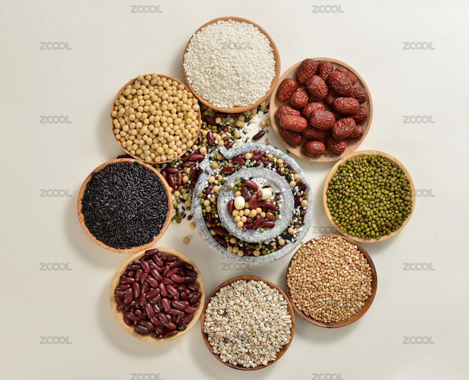白底,白色背景,一碗,小米,红豆,绿豆,糙米,红米,红枣,花生