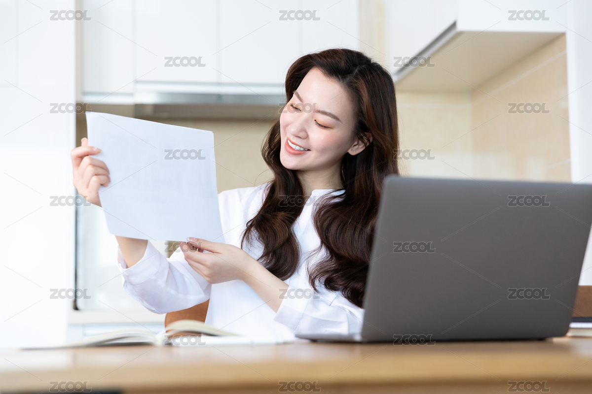 居家办公整理文件的职场女性