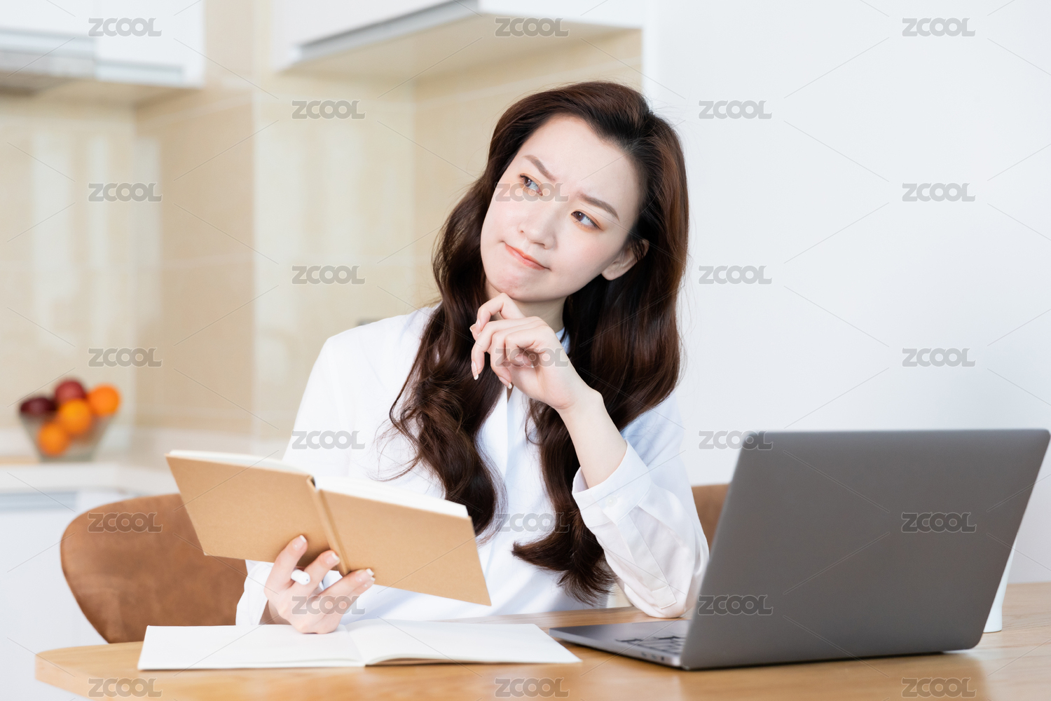 居家女性拿着书本思考状态