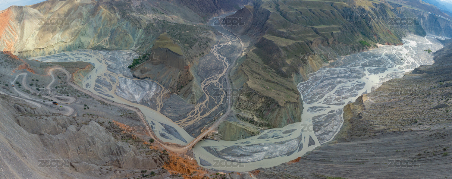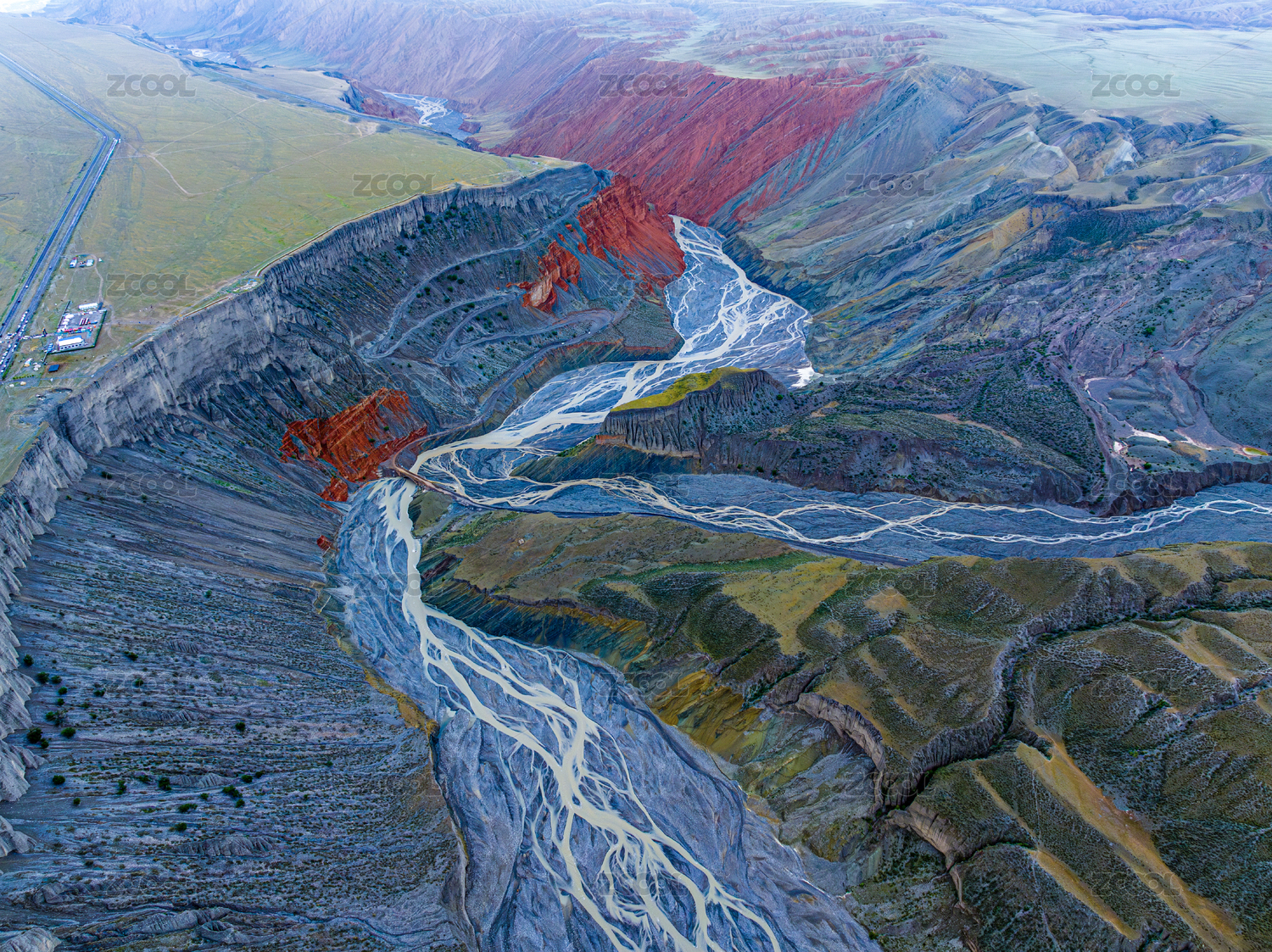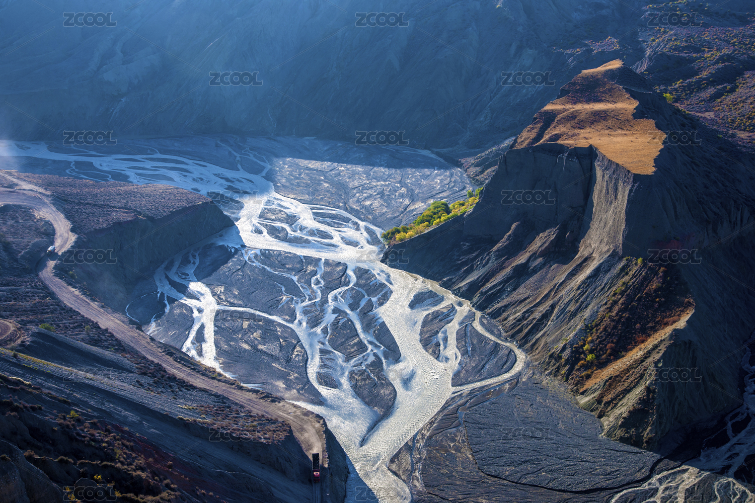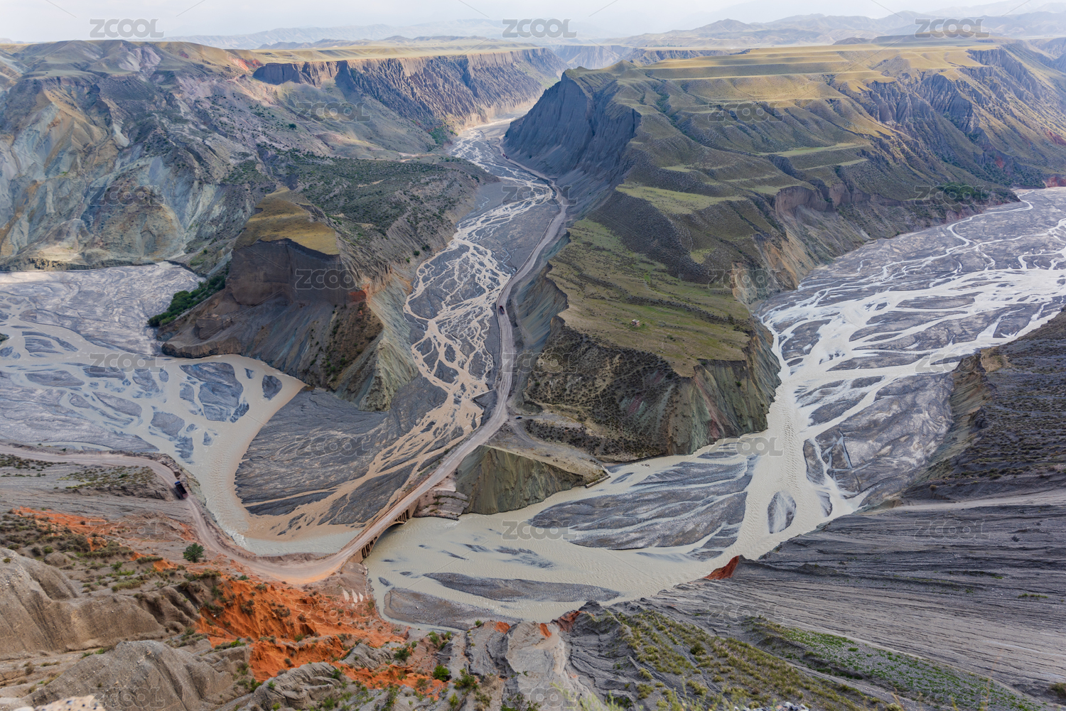 中国新疆安集海大峡谷谷底冲击成蜘蛛网形河流