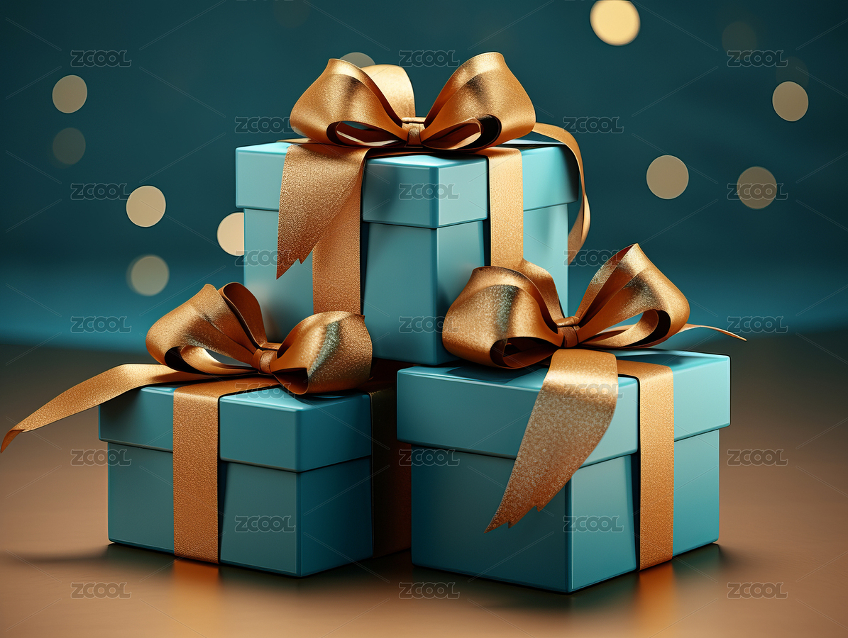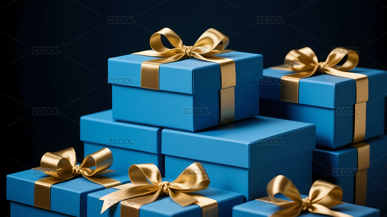 优雅蓝色礼物金色蝴蝶结排列整齐