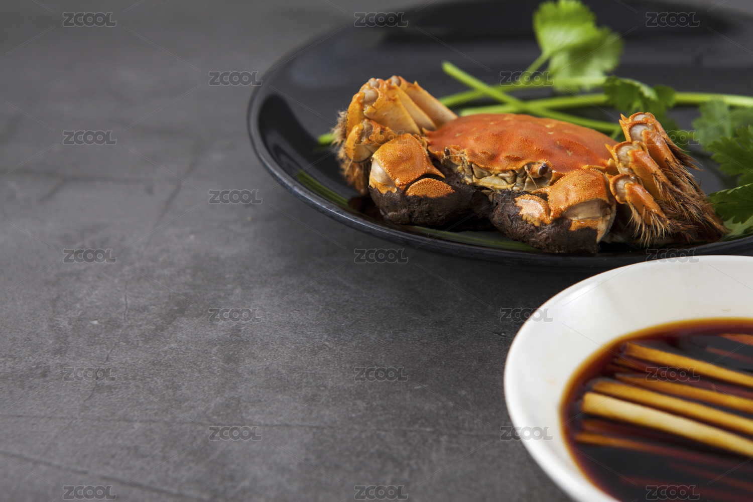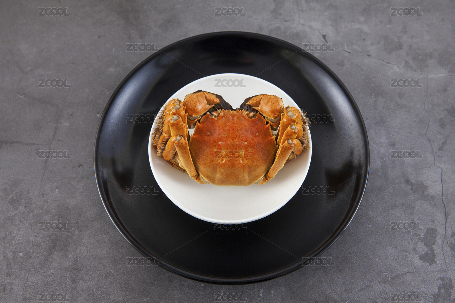 灰色背景碟子里的大只螃蟹