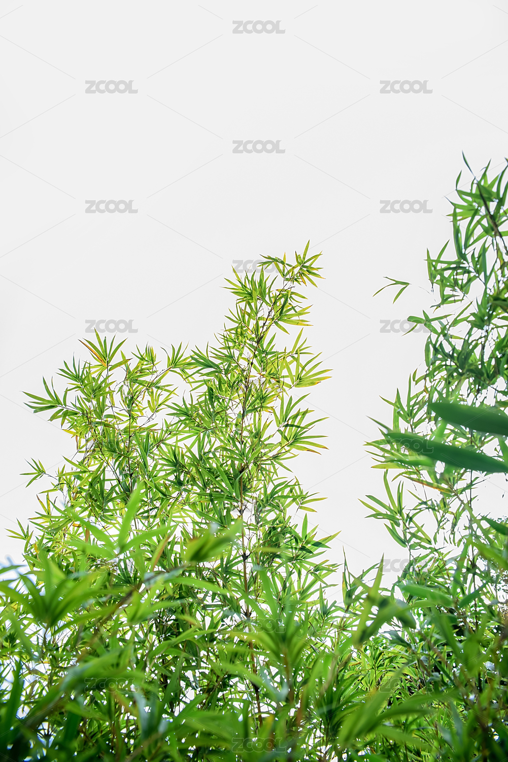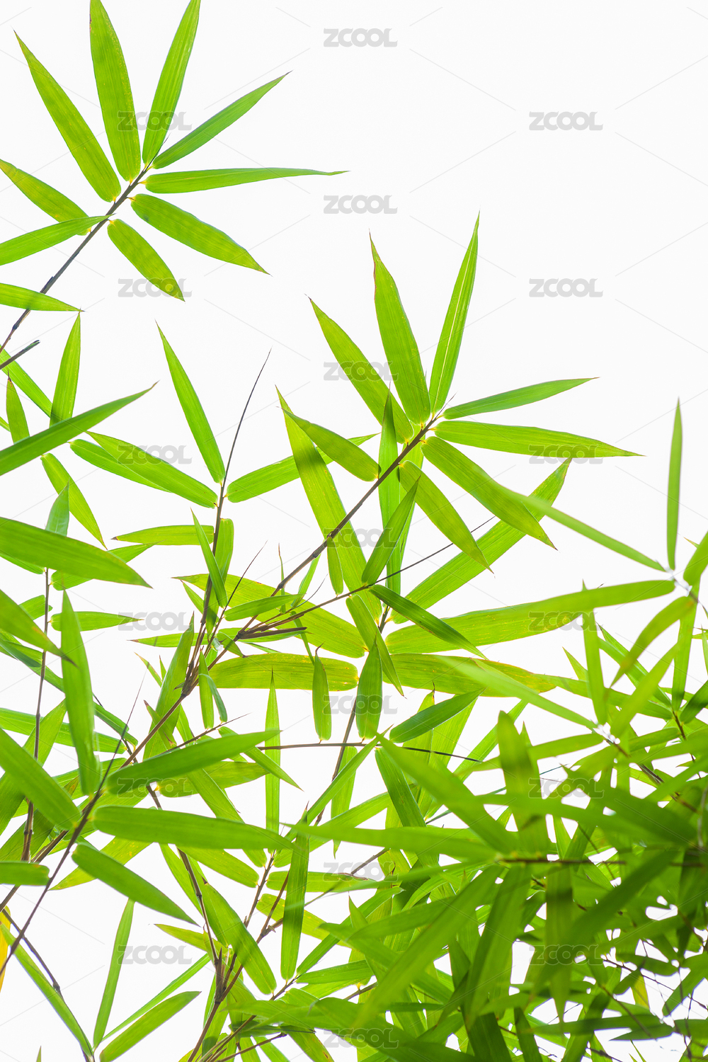 绿色竹叶的特写和白色的背景,中国传统文化中君子的象征