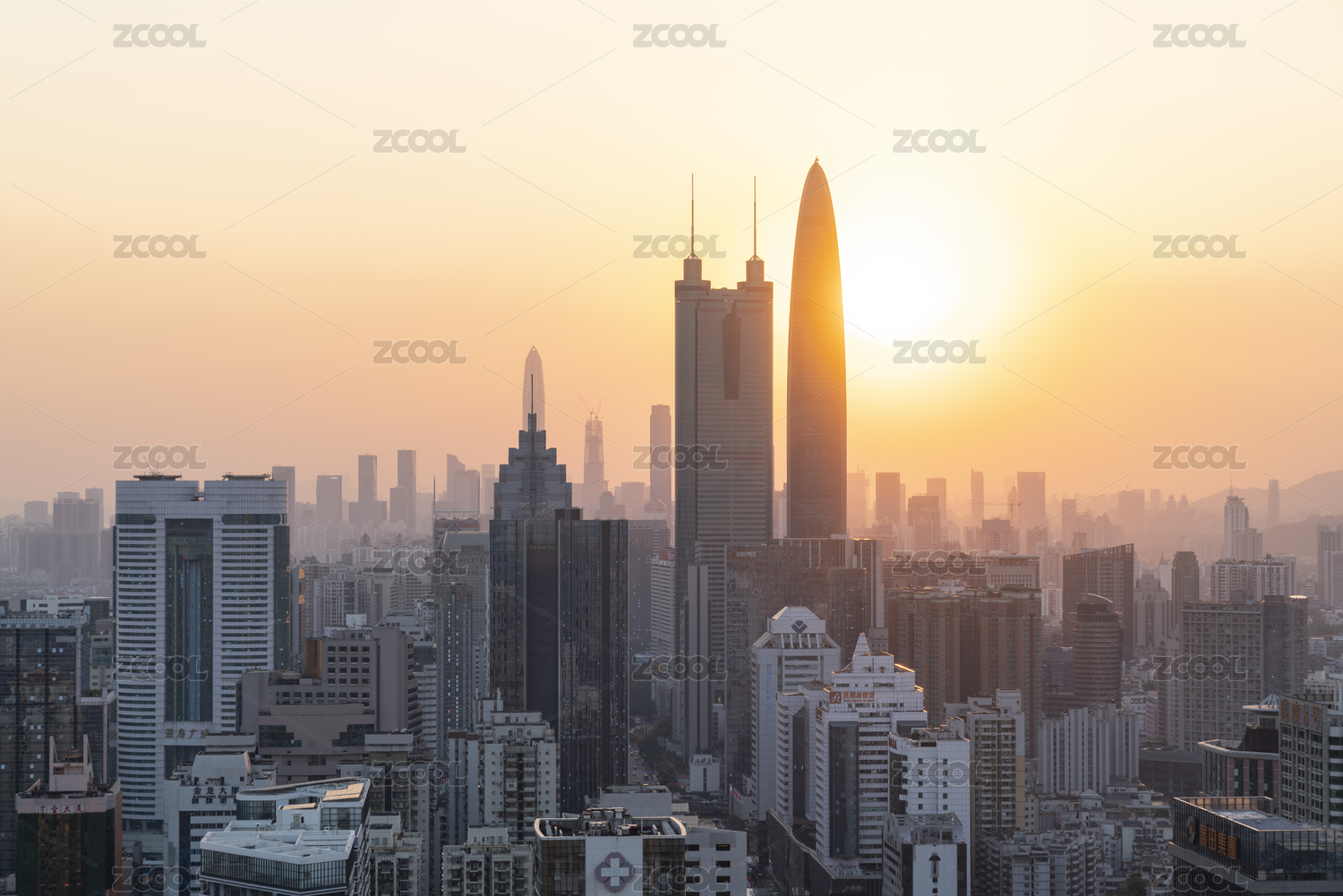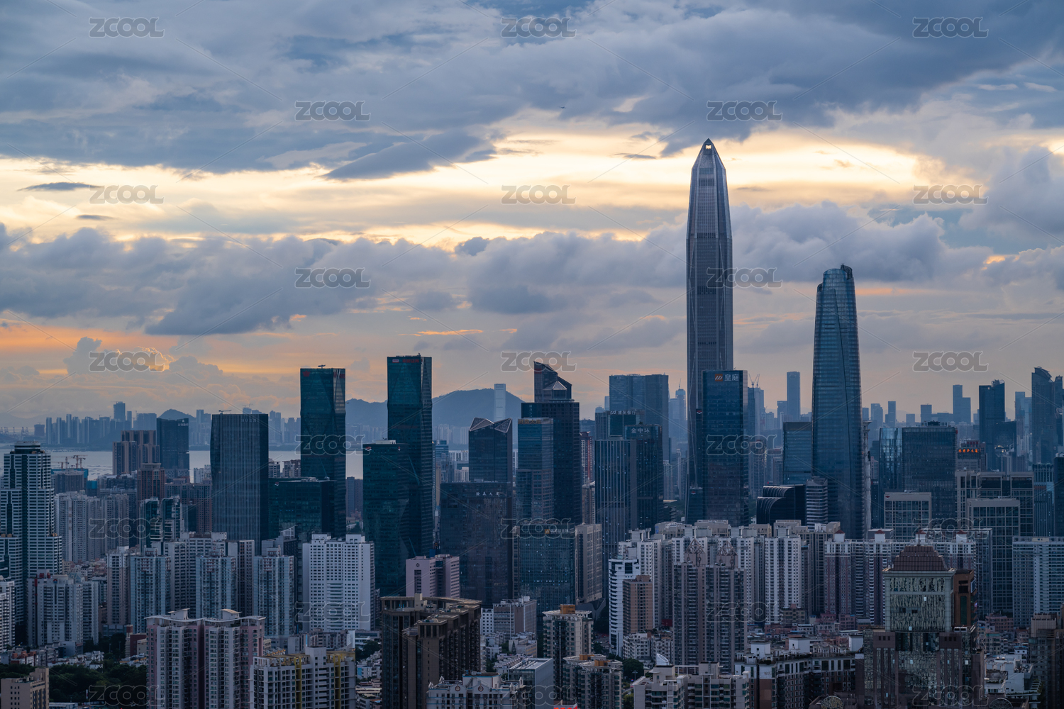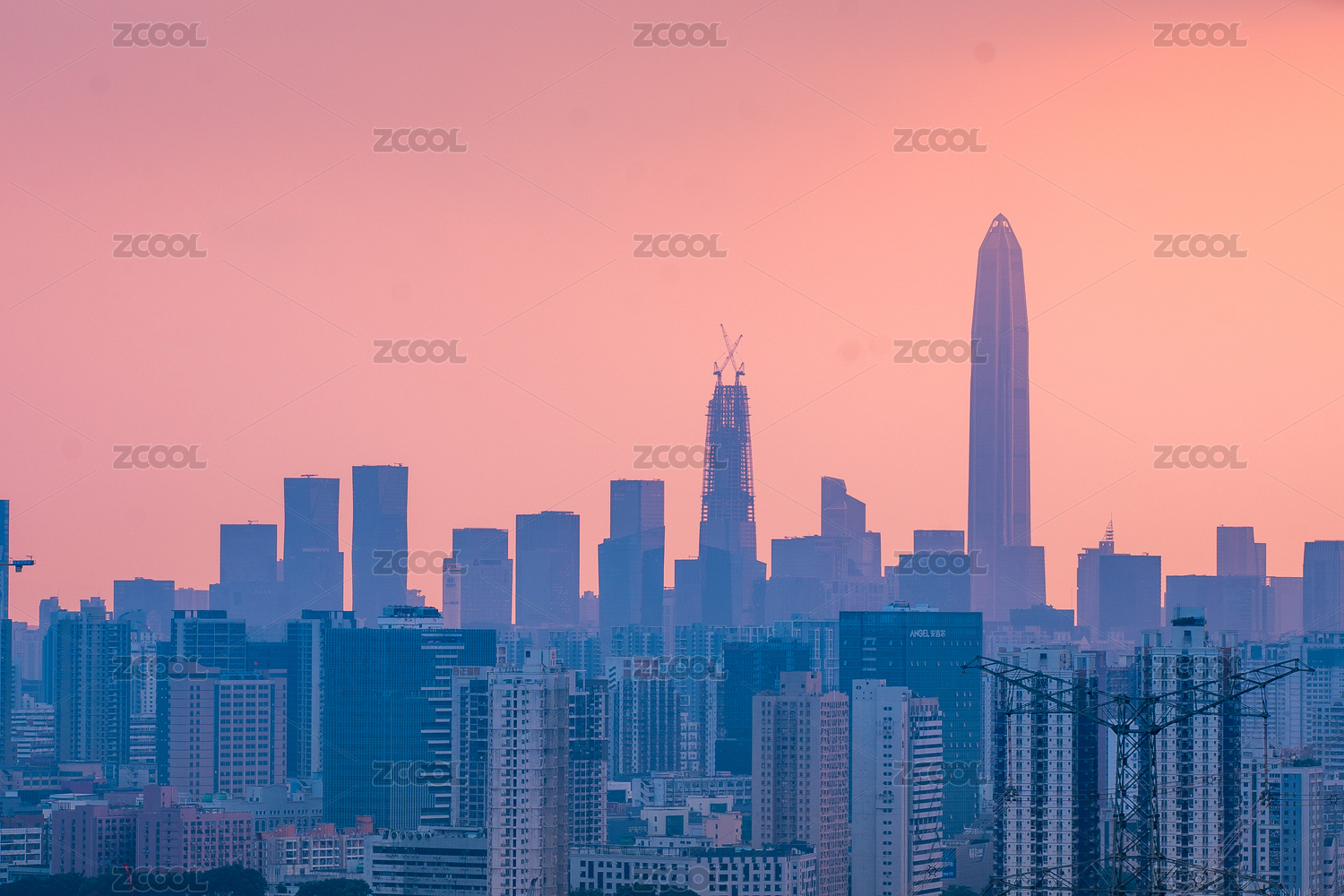 深圳地标地王大厦京基100平安金融大厦黄昏日落