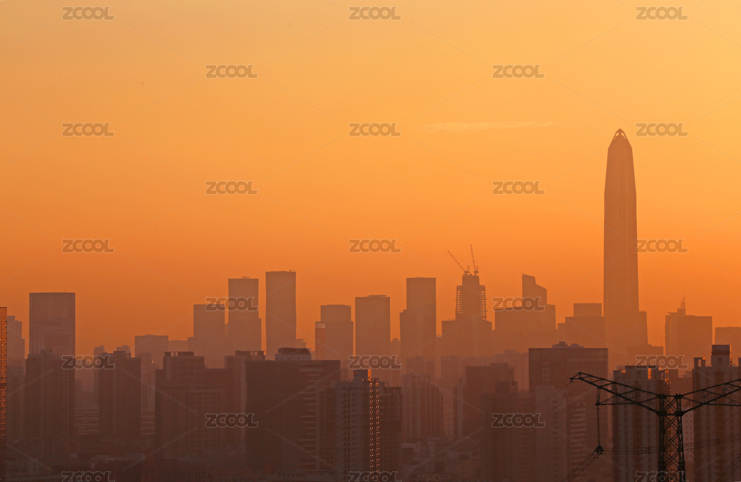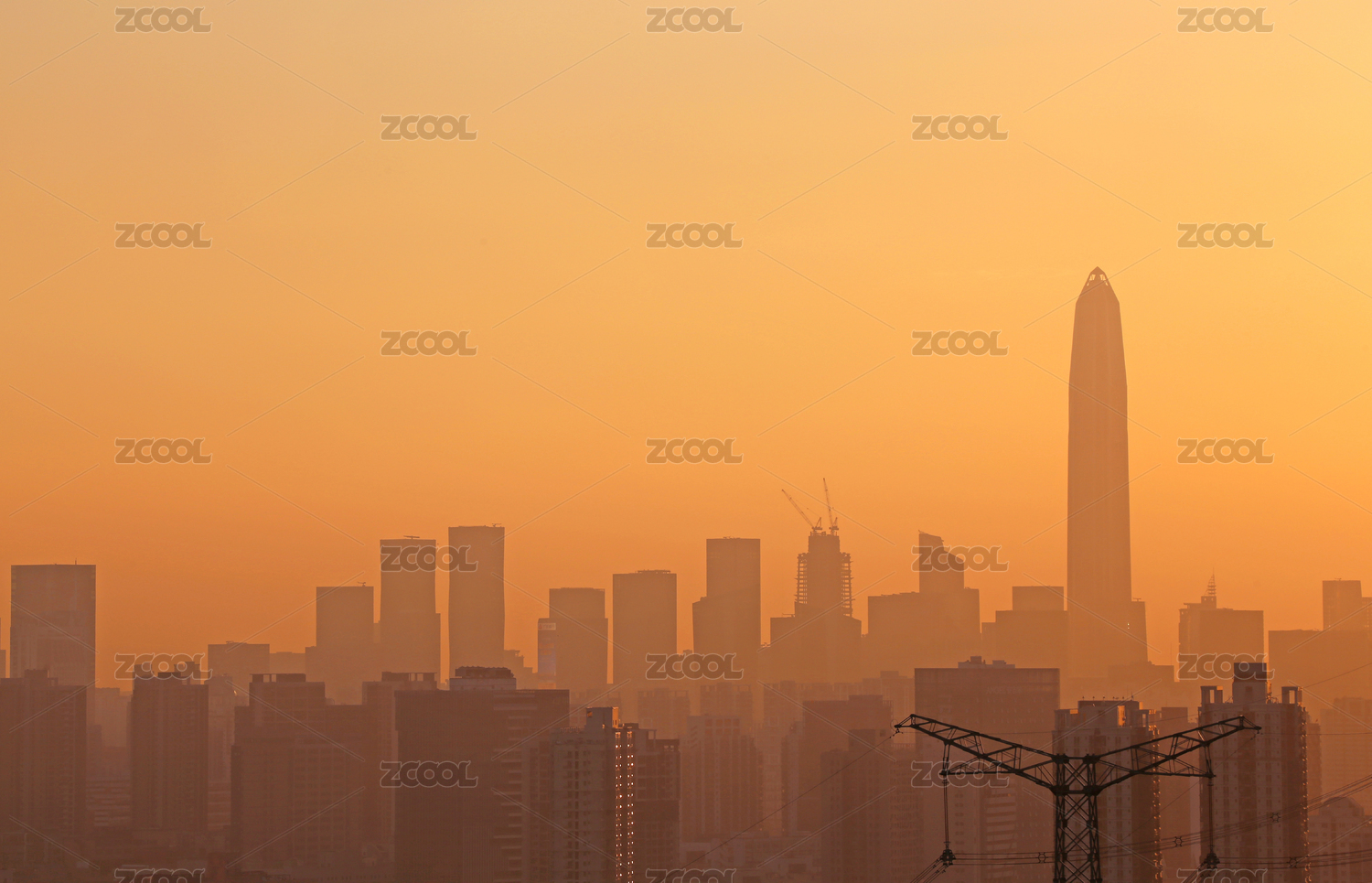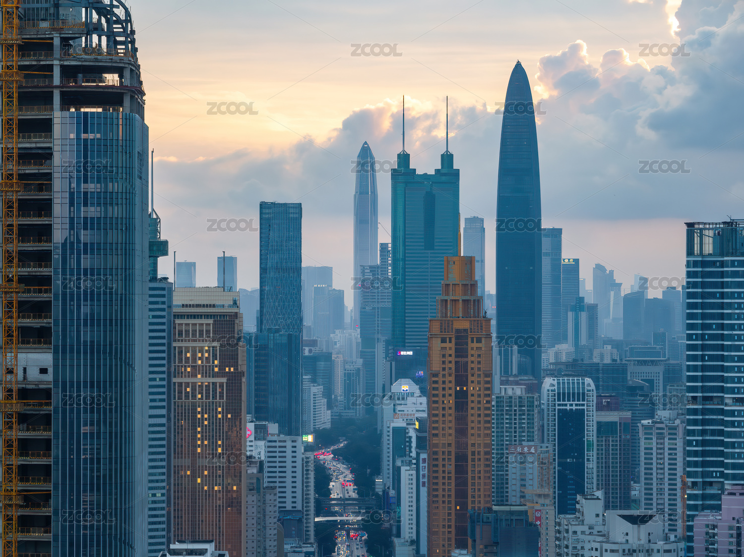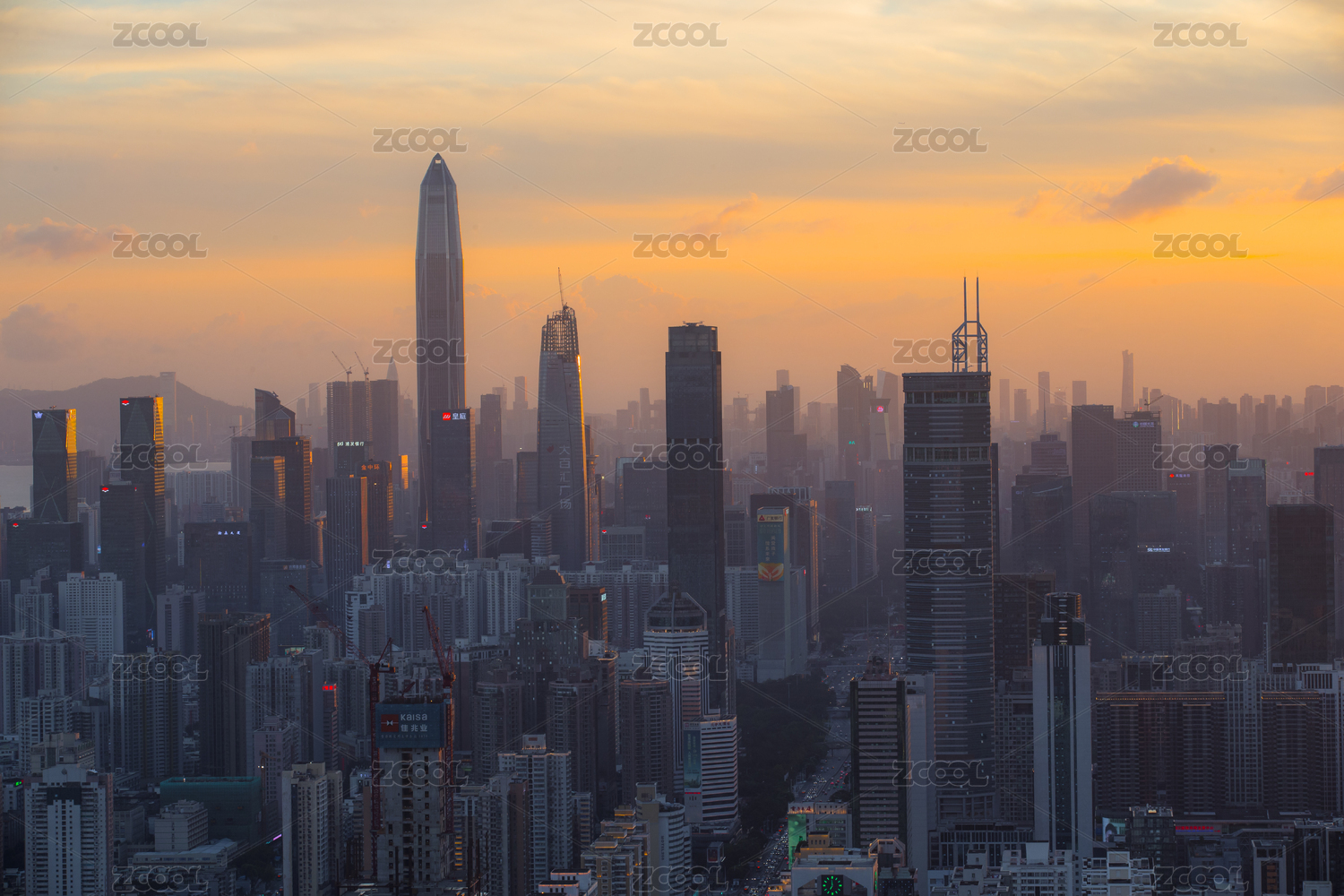 深圳地标地王大厦京基100平安金融大厦黄昏日落