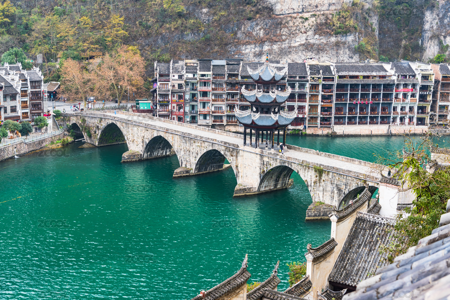 中国贵州黔东南镇远古镇祝圣桥与魁星楼