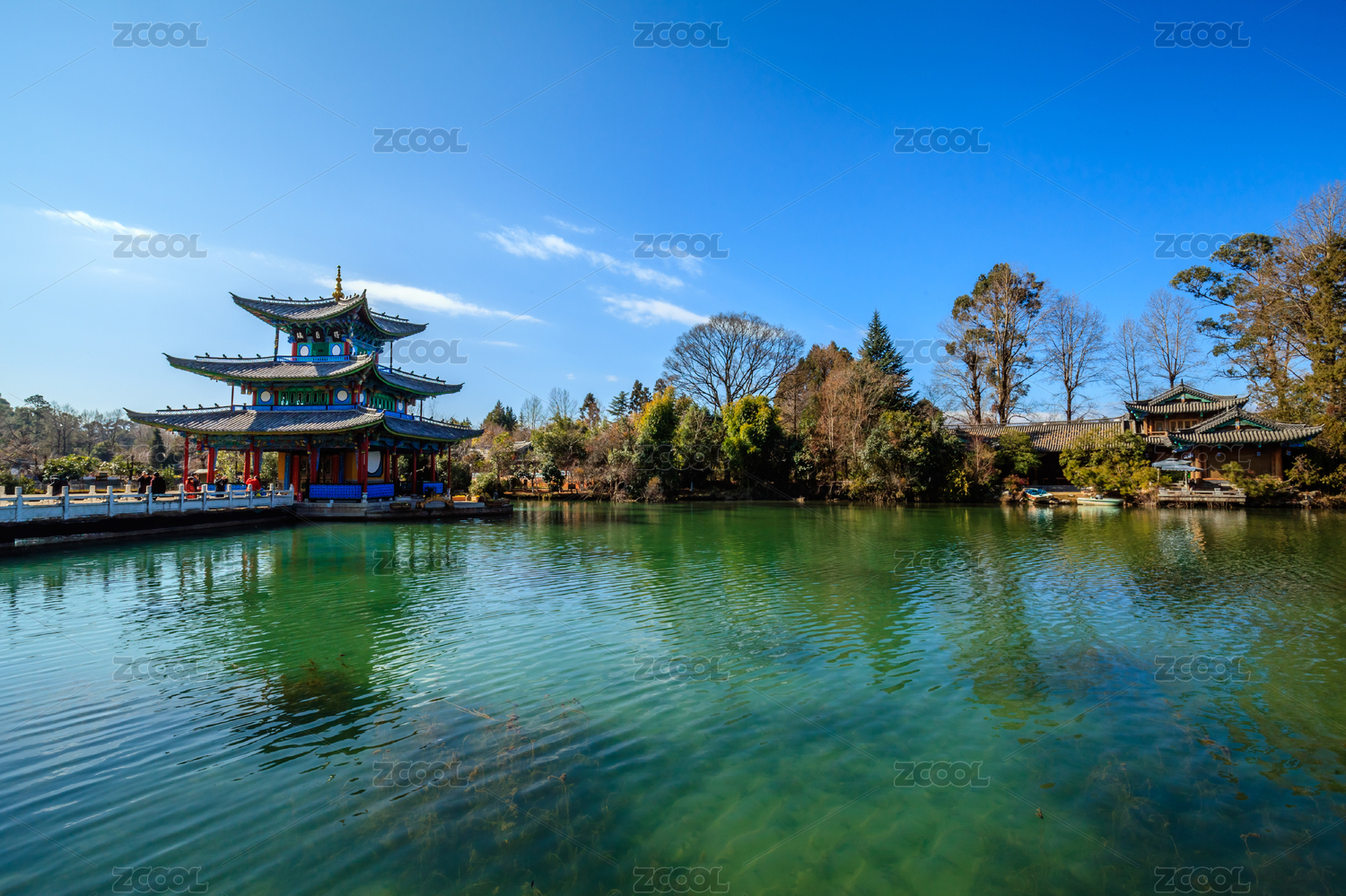 丽江黑龙潭公园得月楼白昼晴天城市风光