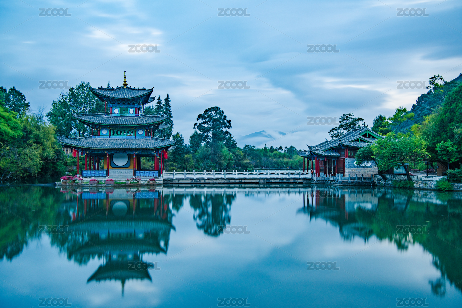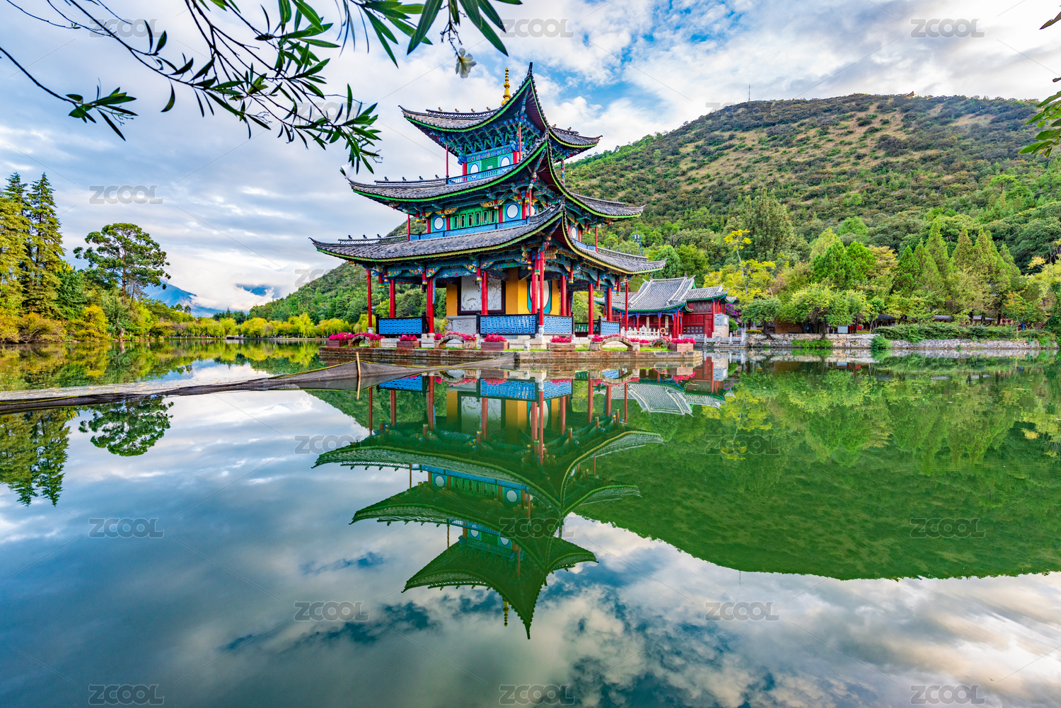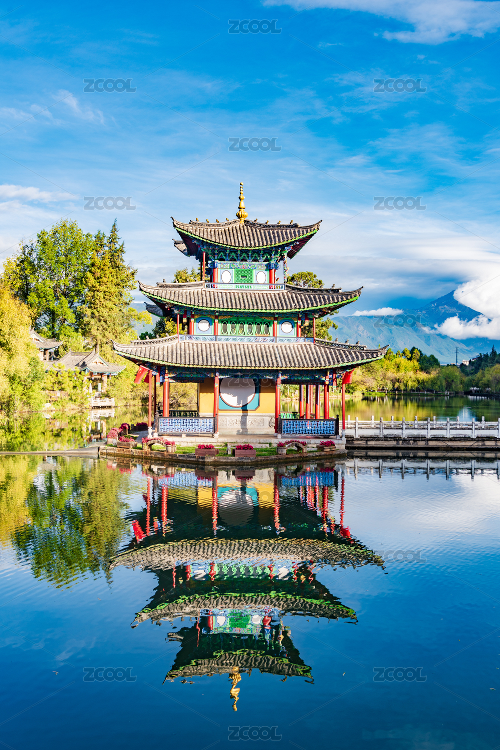 云南,丽江,黑龙潭,湖泊,公园,园林,得月楼,倒影,古建筑,亭子